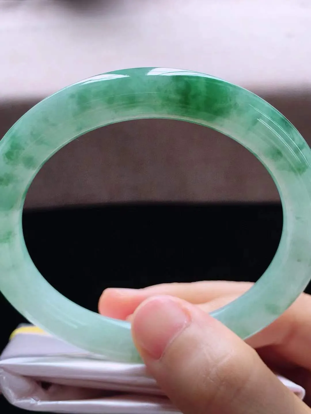 【翡翠名称】老种冰飘花55正圈口翡翠手镯 【翡翠尺寸】55*12*8.8mm适合54-56正圈口佩戴
