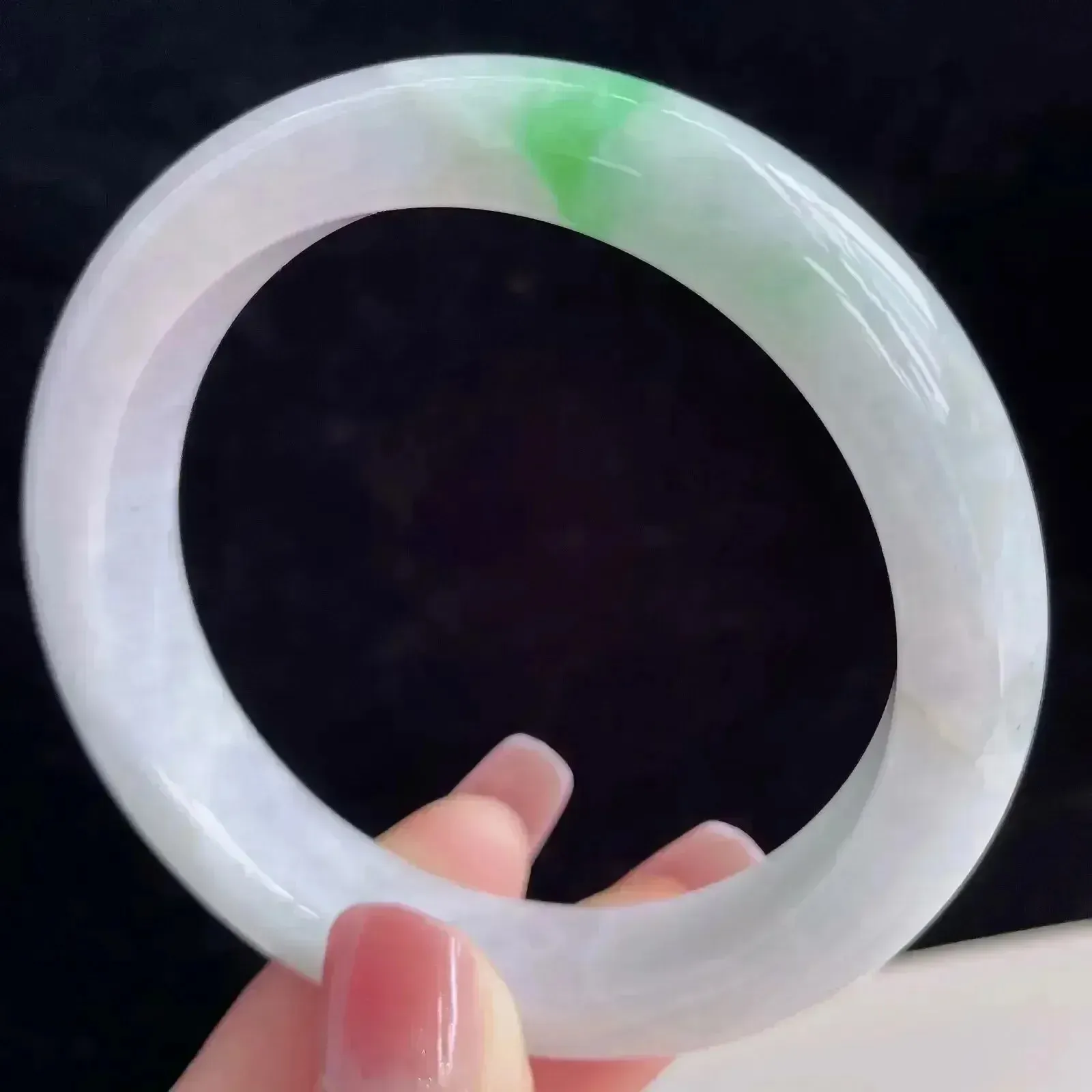54.6圈口玉石手环天然翡翠飘绿正圈手镯58.94g