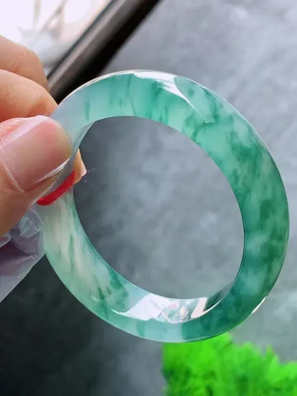 nr实拍55*13*9.8平安镯 天然缅甸翡翠飘花厚装宽边玉手镯 玉手环