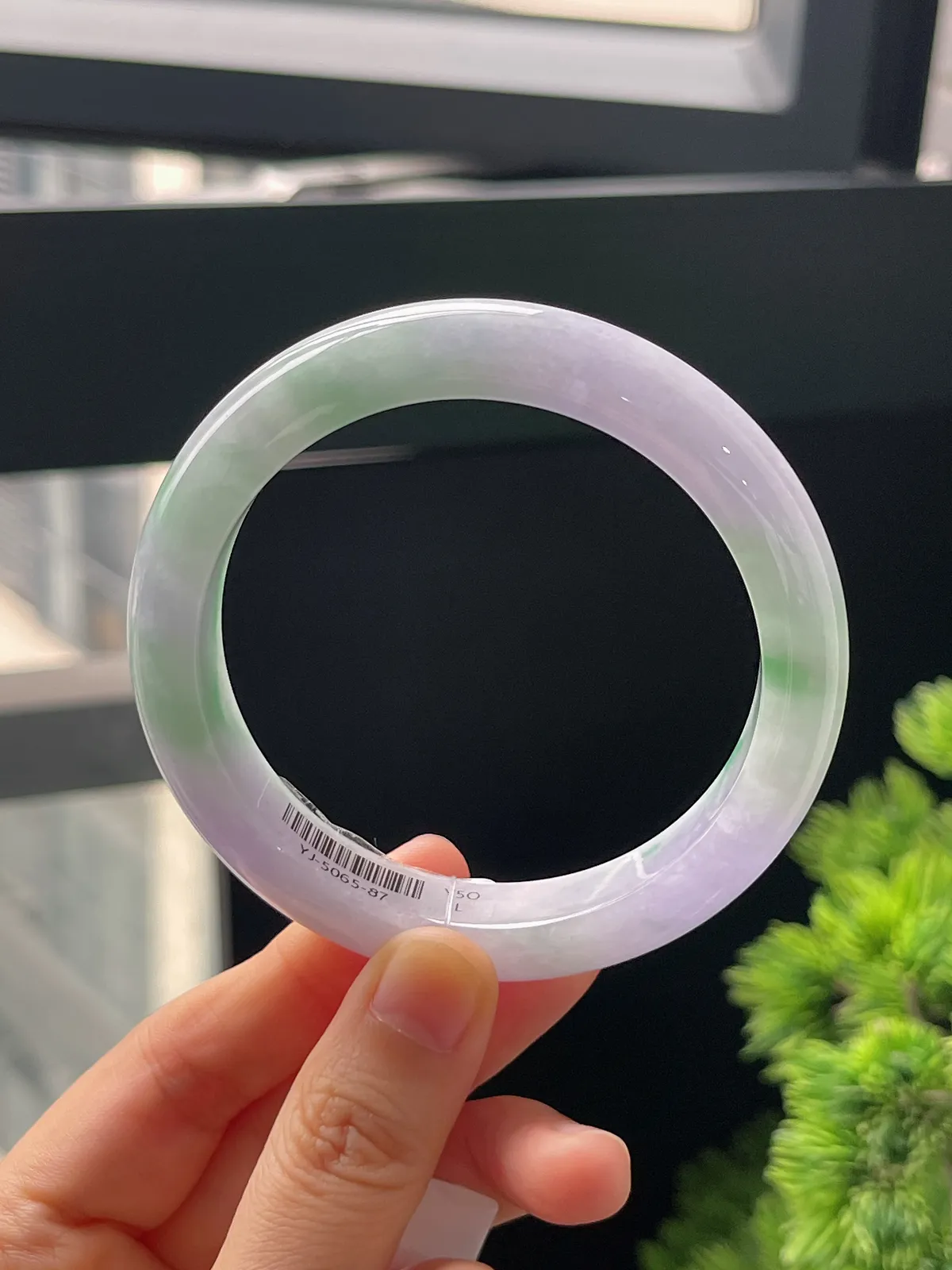 圆镯55.5圈口,翡翠糯化种飘绿手镯