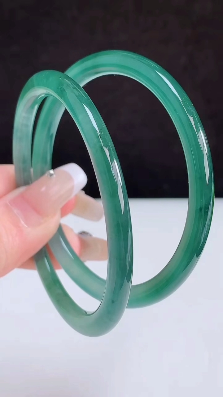 圈口55-56翡翠a货蓝水叮当镯一对尺寸55.6-4.5,重量:32.67g3月5日
