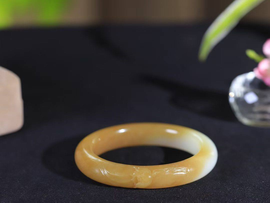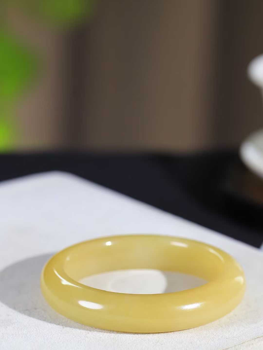 【花样年华·手镯】 精品和田玉糖玉手镯,质地油润细腻,色泽高贵典雅,镯型古朴典雅。在诗情画意的雨