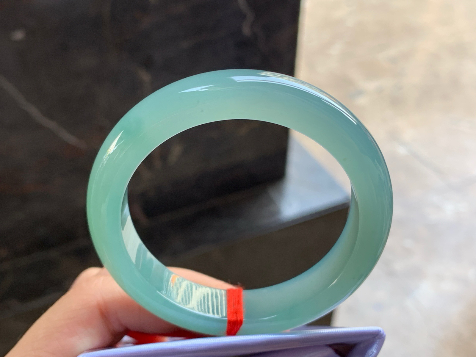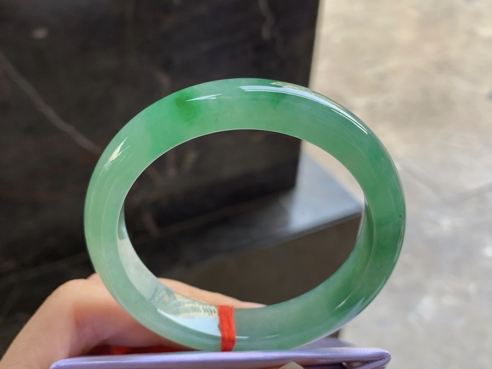 冰种紫罗兰飘花圆条手镯 尺寸51.5*9.8*9 整体冰透莹润质感,底子纯净细腻,胶胶润润的,水
