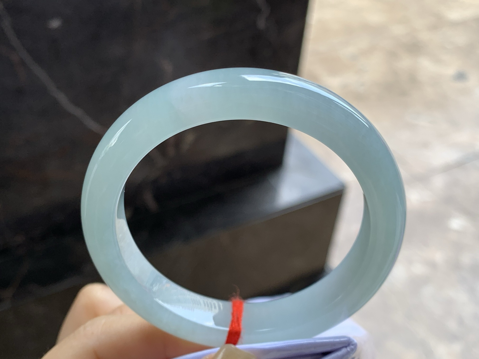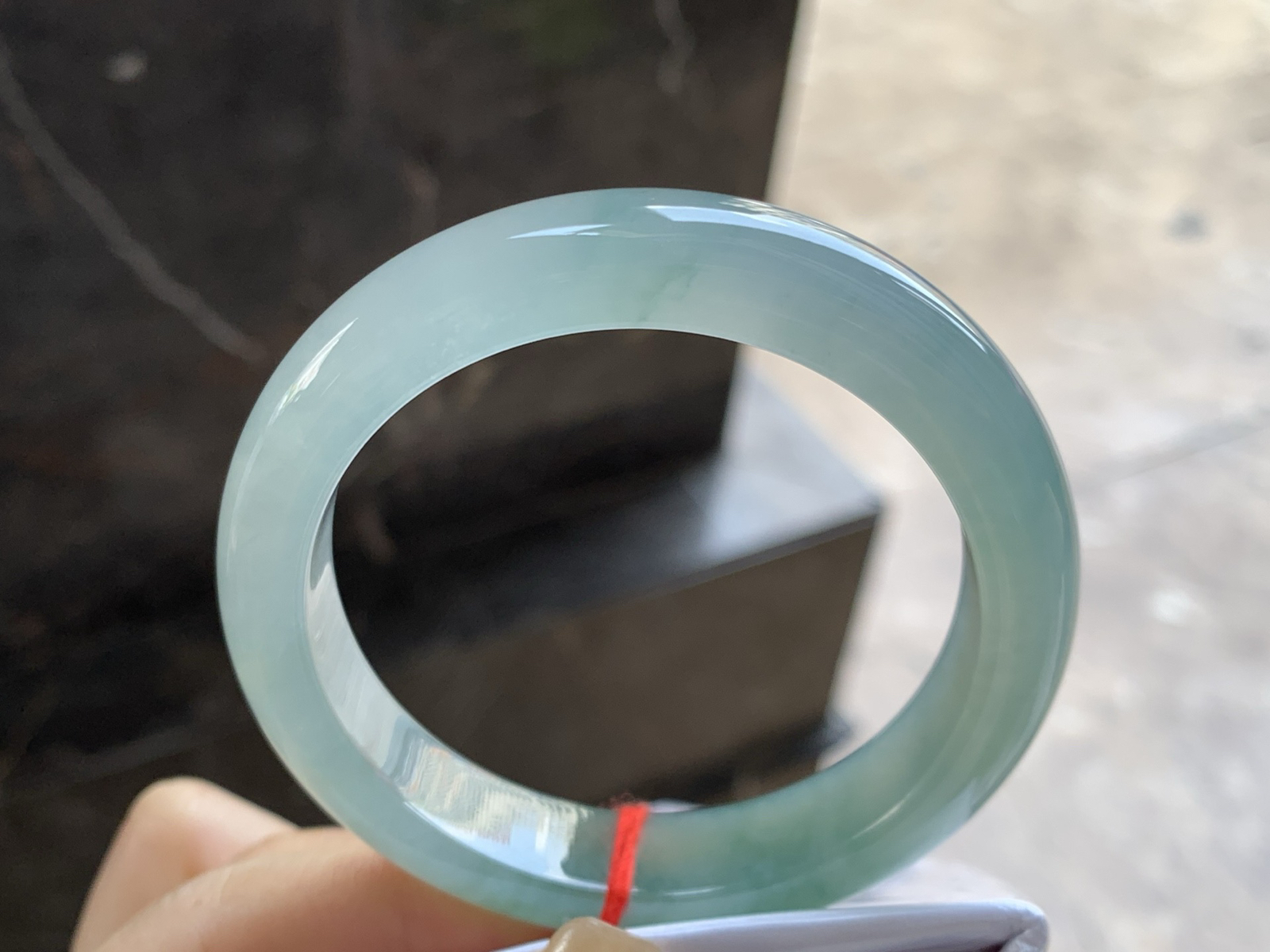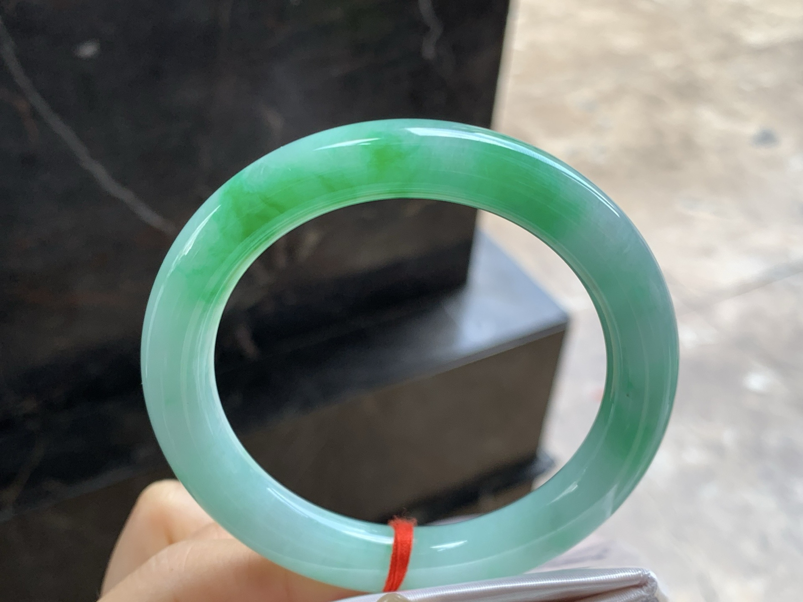 A货天然翡翠冰糯种飘花手镯59圈重量52.54 4月23日