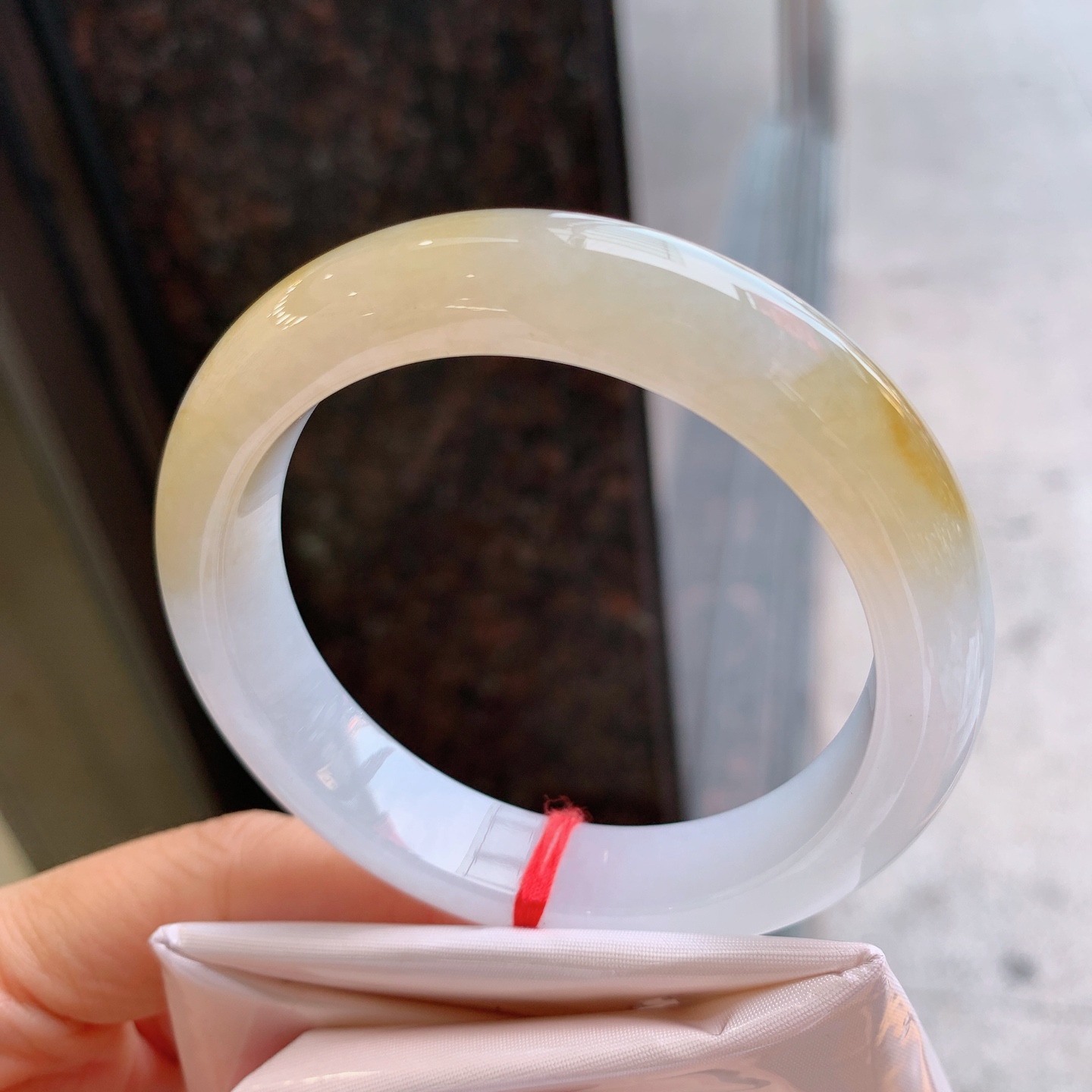 正圈冰种黄翡,无裂,尺寸:56.5/12.7/9.2,细腻