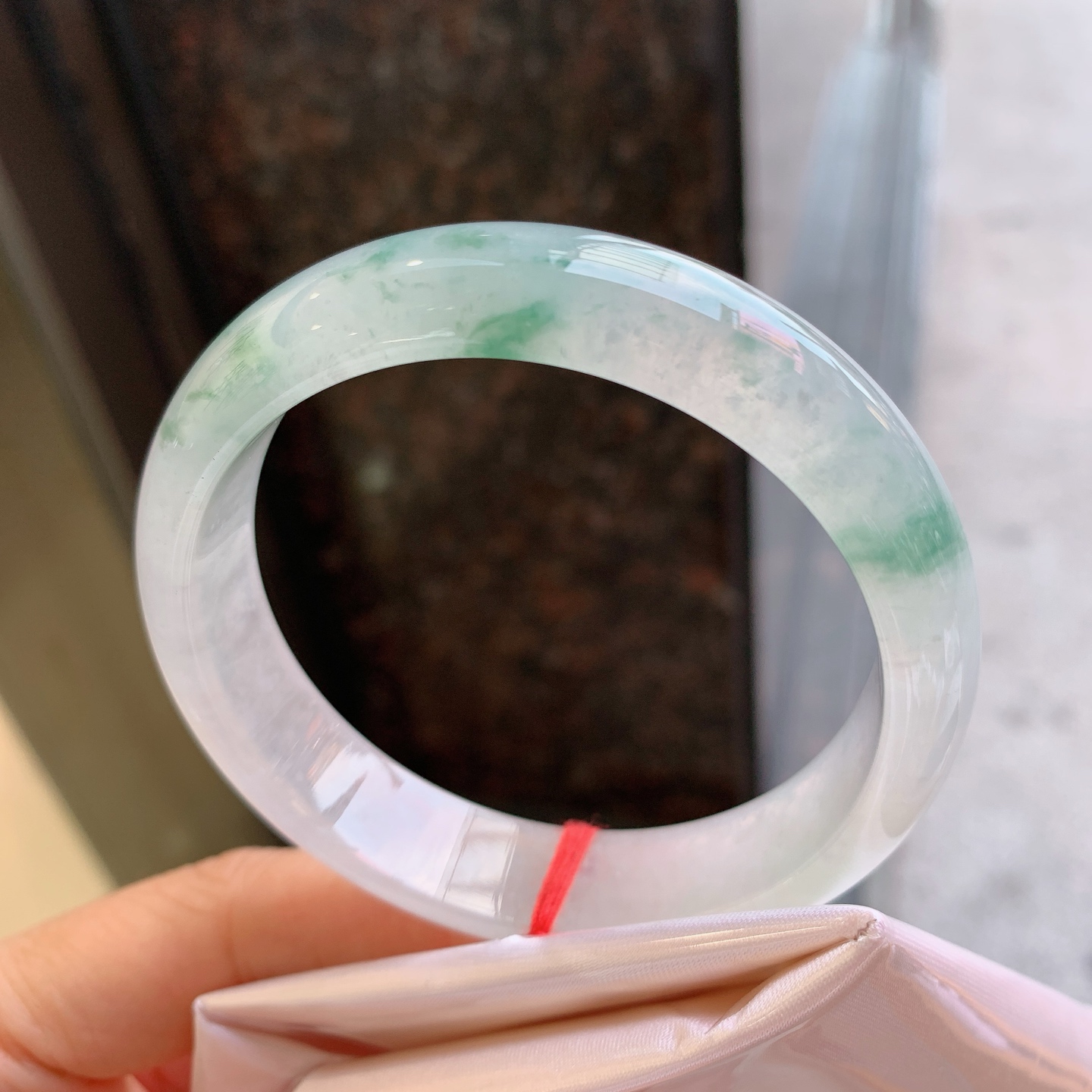 正圈冰种飘花,无裂,尺寸:57.5/14/7.8,冰润