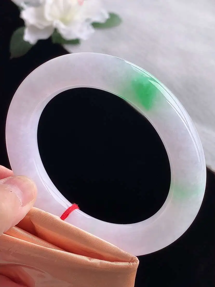 a货翡翠老坑冰种飘花正装正圈手镯50-51小圈口 尺寸50.8×11.2×7.8mm 1119