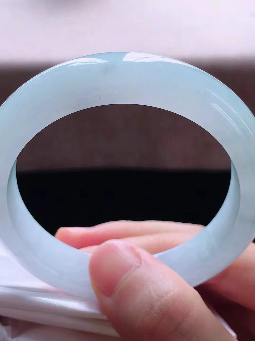 a货翡翠老坑冰种白月光正装正圈手镯55-56圈口 尺寸55.8×11.8×8mm 1119