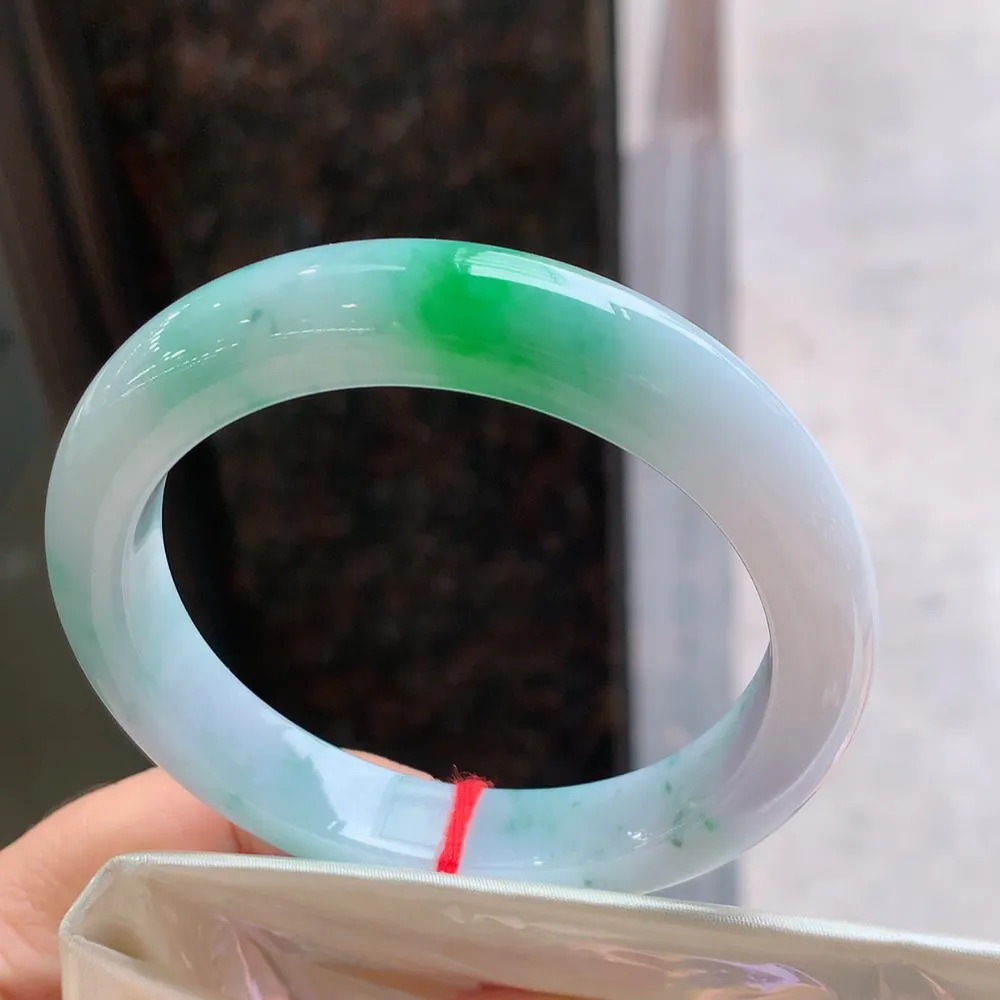 正圈冰糯翠绿 无瑕 尺寸:61.1/12.3/8.3 色好 大圈口