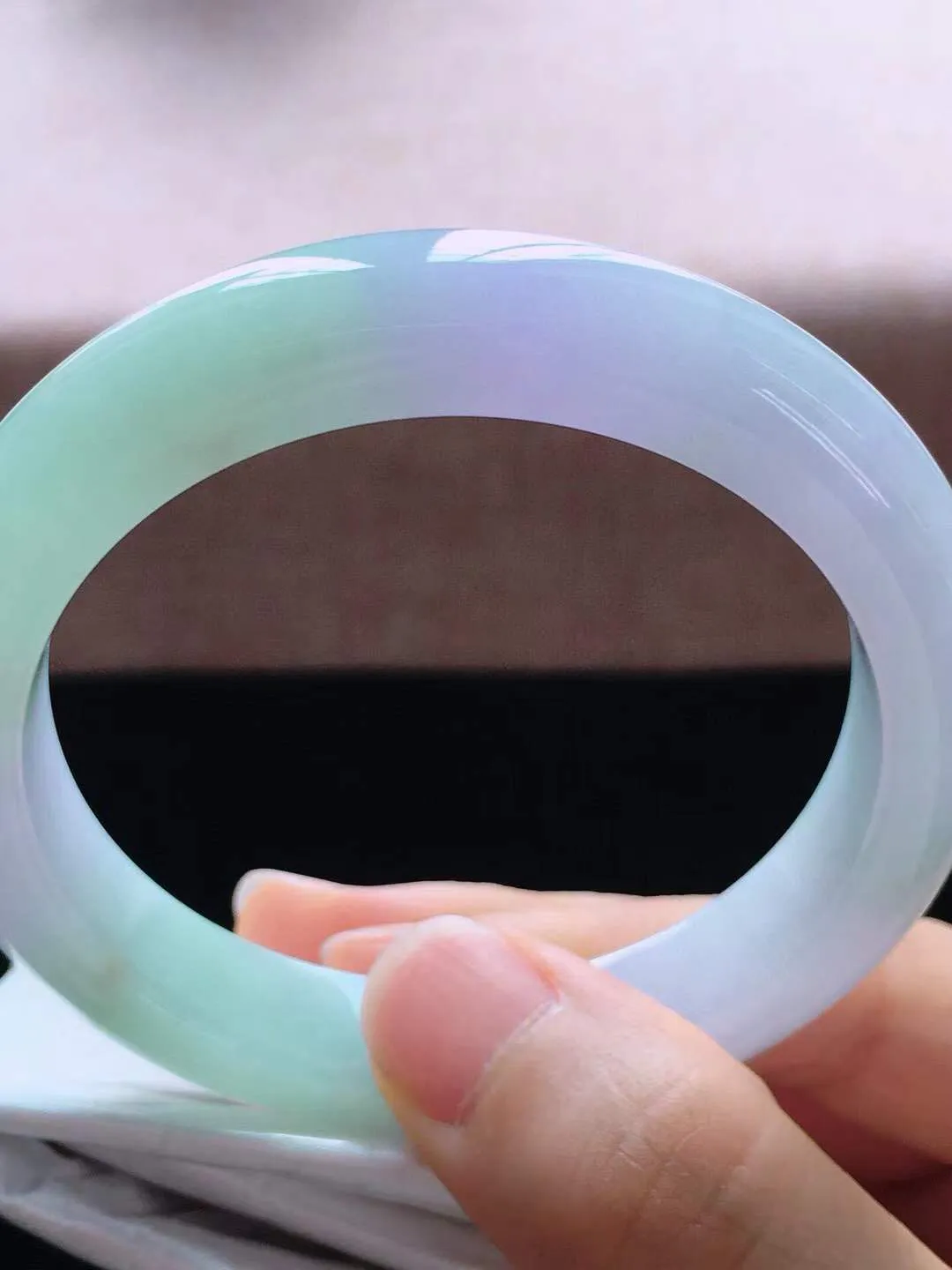 【翡翠名称】老种冰春彩54.6正圈口翡翠手镯 【翡翠尺寸】54.6*11.2*8.6mm适合53.6