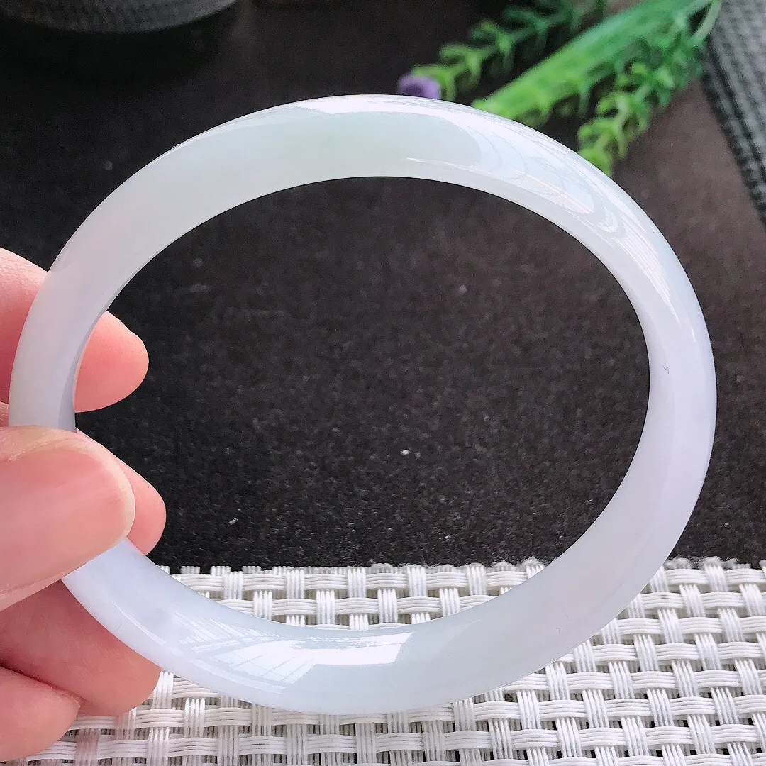 天然A货翡翠64/12.8/7老坑冰纯果冻胶月光白手镯宽边玉镯