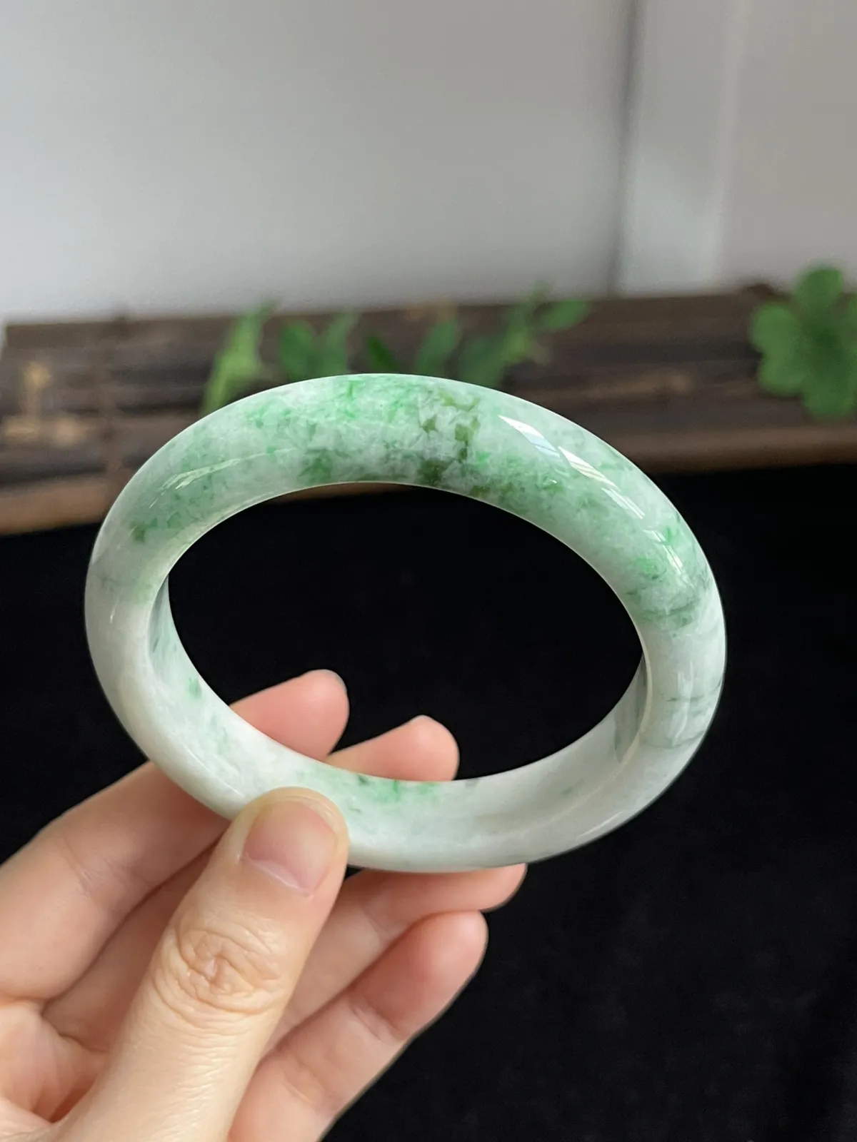飘花玉石镯子天然翡翠飘绿好种水55mm正圈手镯57.03 克
