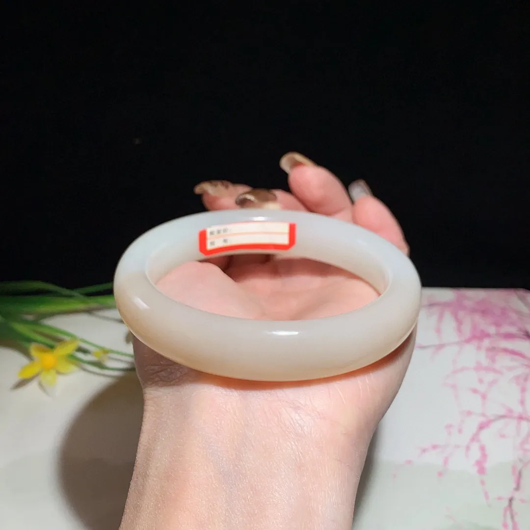 和田玉57.5圈口羊脂白宽版手镯!玉质细腻油润 底色纯净 无裂无杂 脂粉好,品质高