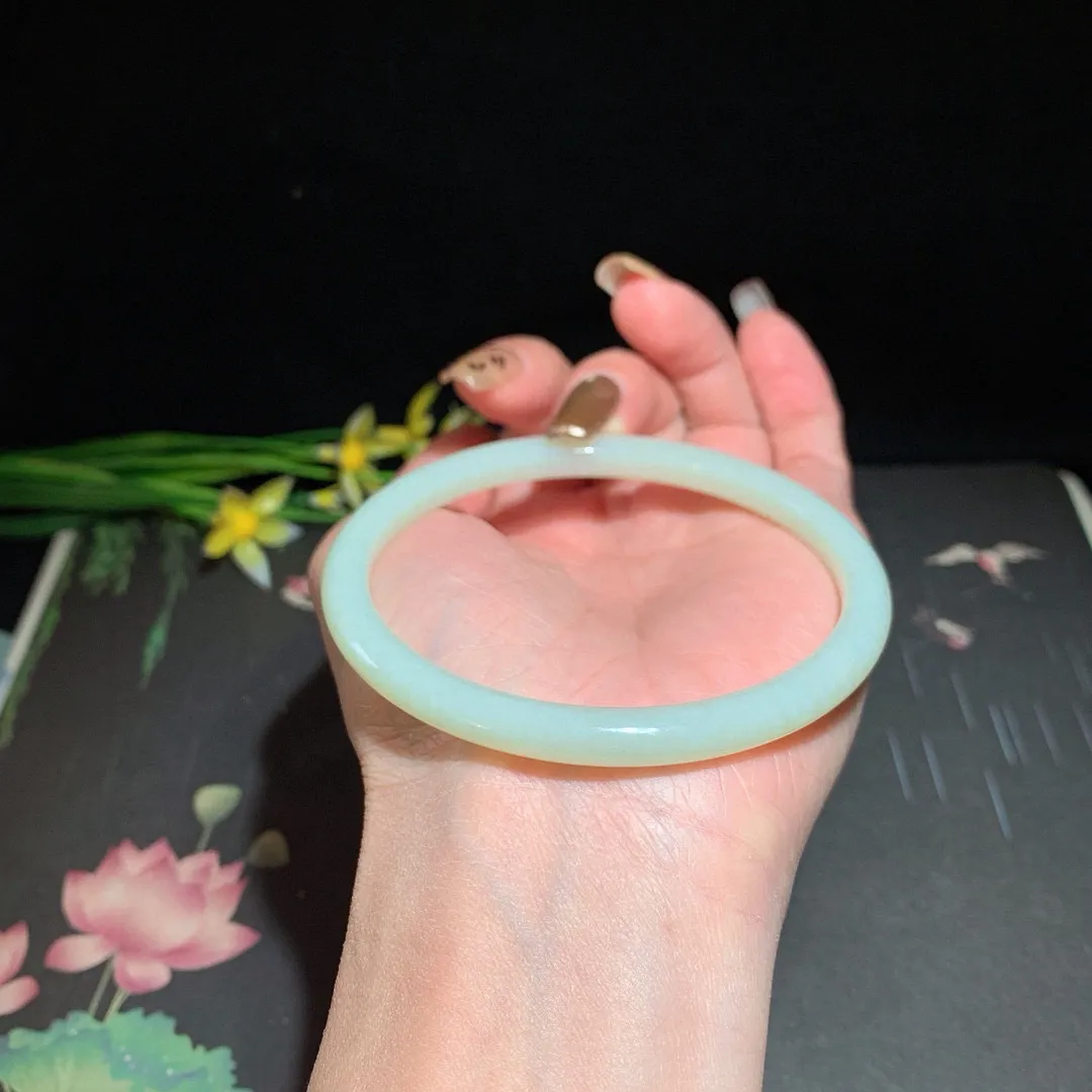 和田玉63.3圈口且末蓝手镯!玉质细腻油润 底色纯净 无裂无黑 脂粉好,品质高。