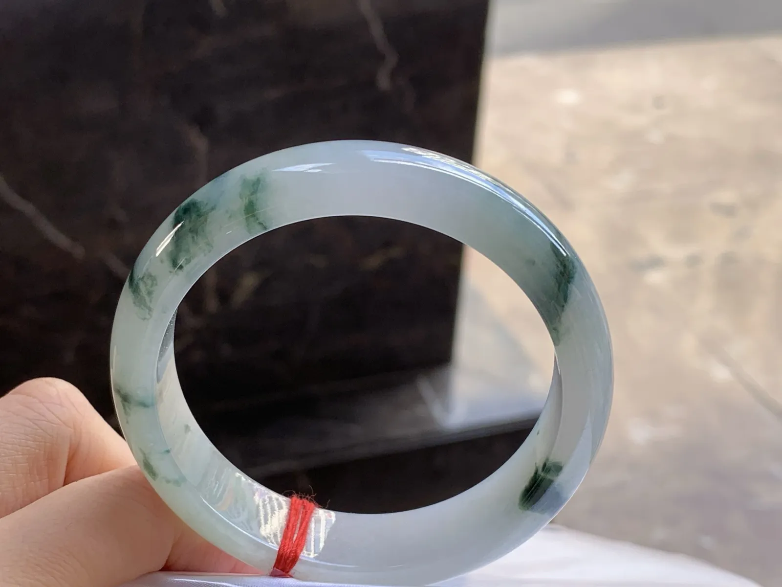 57.5-11mm 冰种飘花圆条手镯 水润冰透 清爽