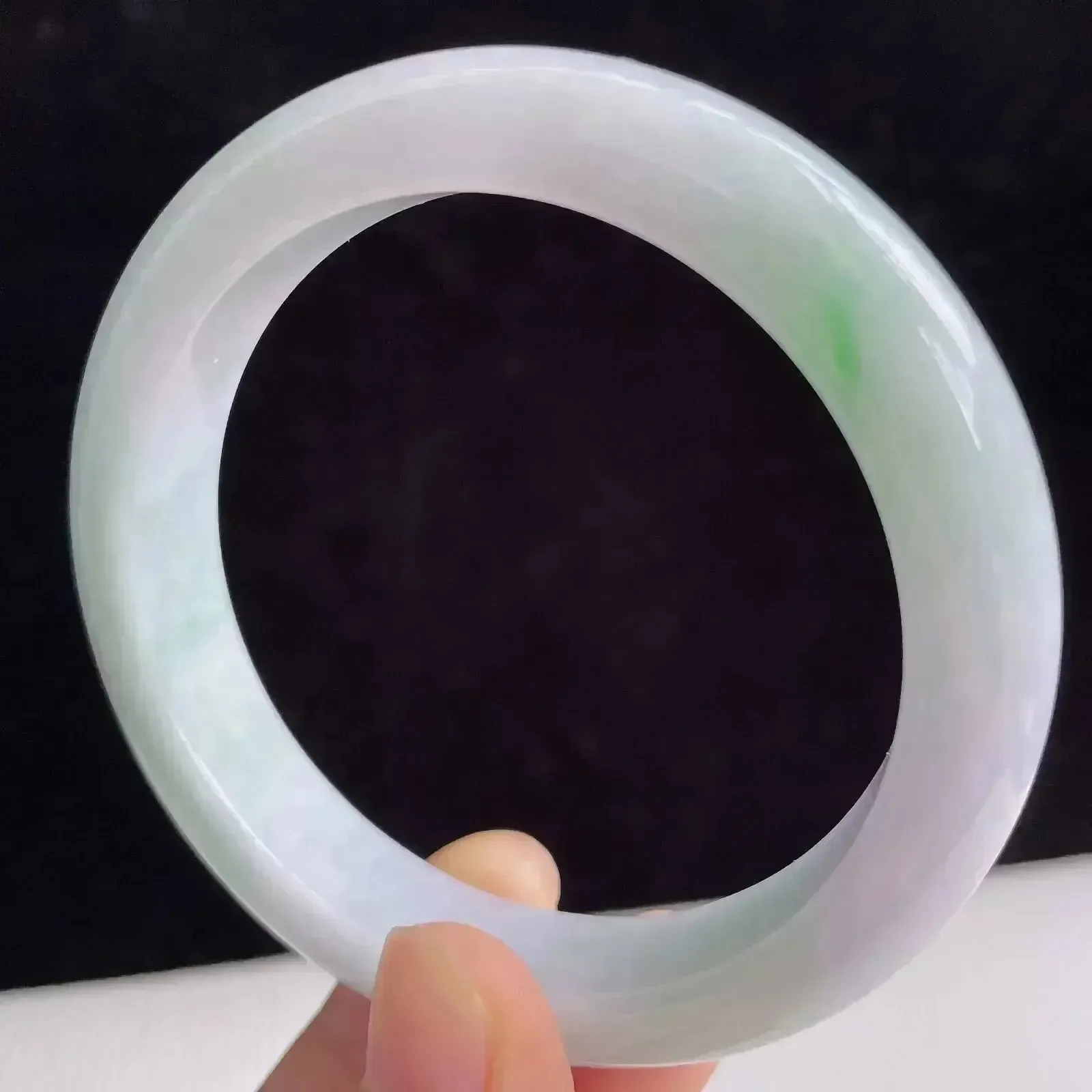 56mm自然光拍摄天然翡翠A货淡绿好种水圆条手镯 40.40克