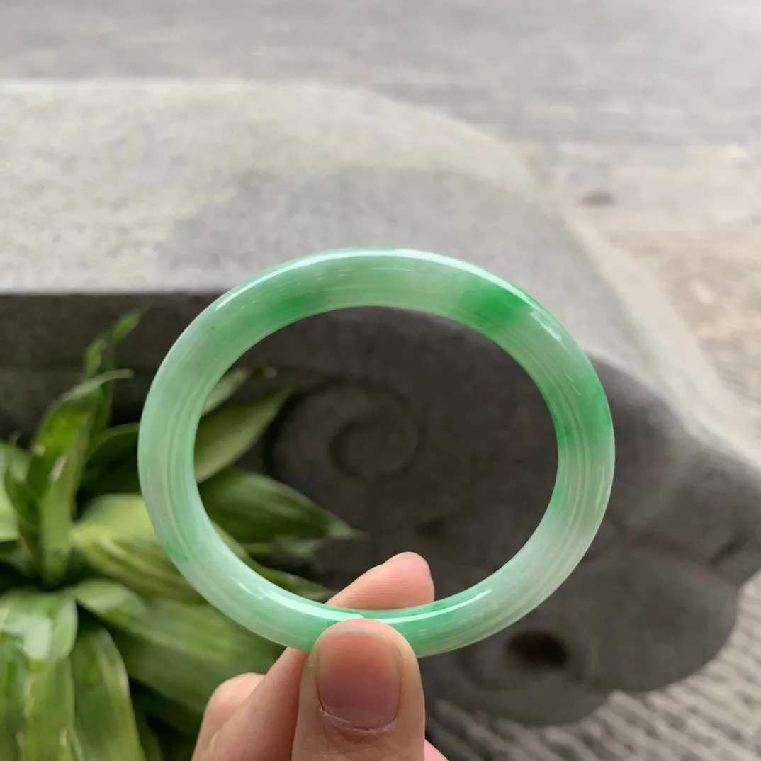 小圈口52.4-6.8 【飘绿圆条手镯】圆条52 53可戴