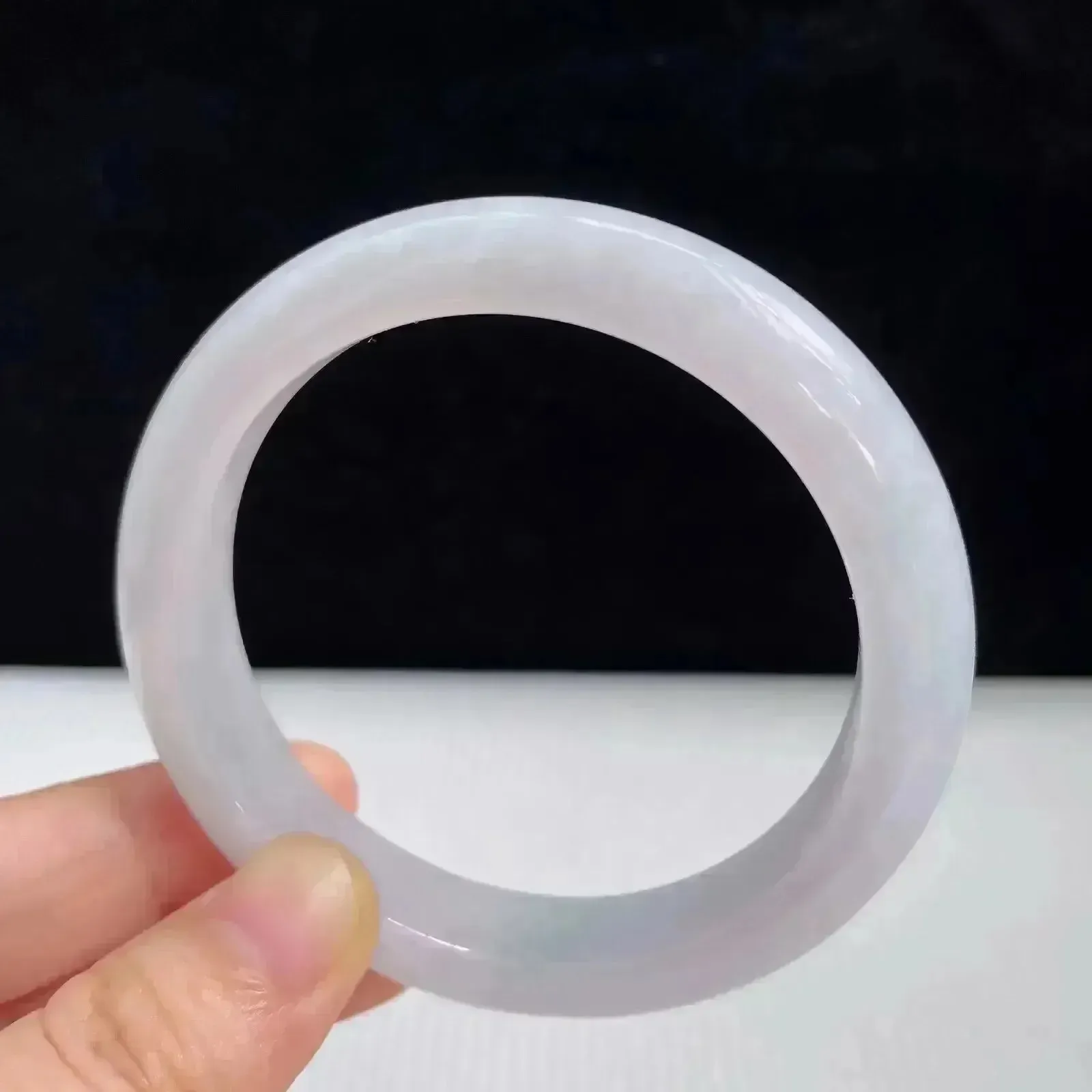 自然光拍摄天然翡翠A货淡紫好种水54mm手镯 47.27克