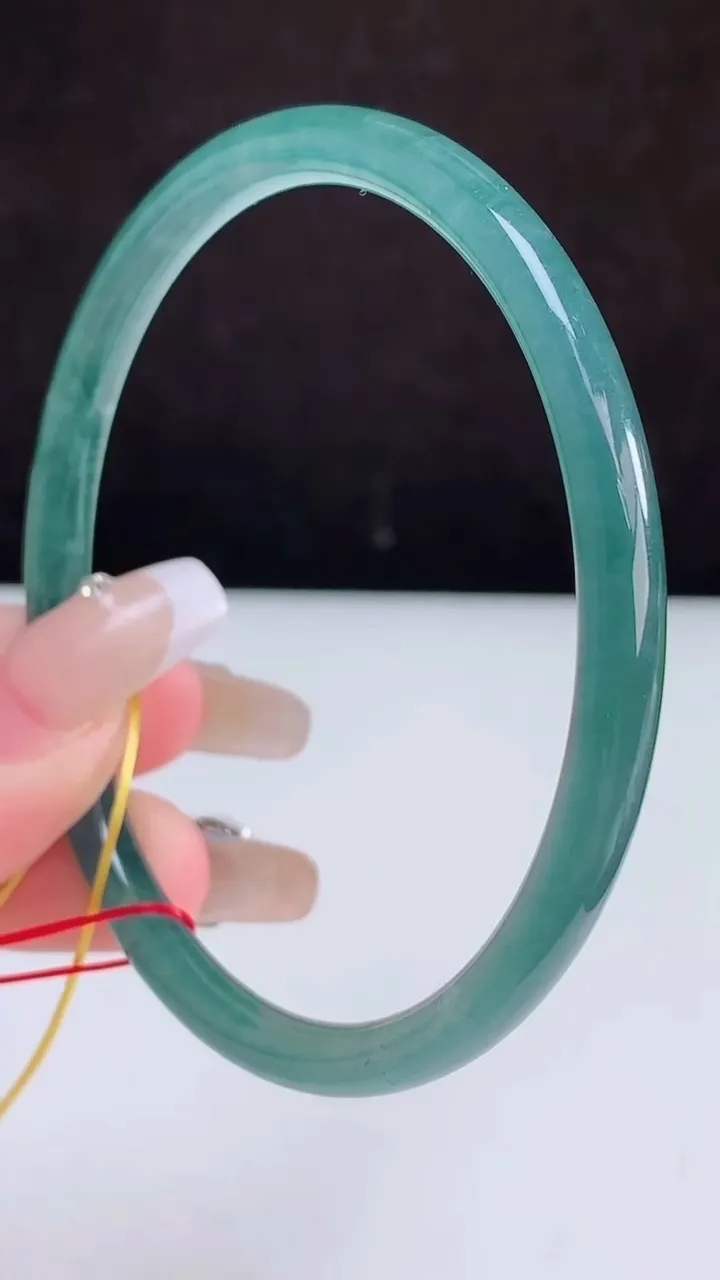 圈口61-62翡翠a货蓝圆条大圈口手镯尺寸61.8-5.6,重量:16.64g3月5日