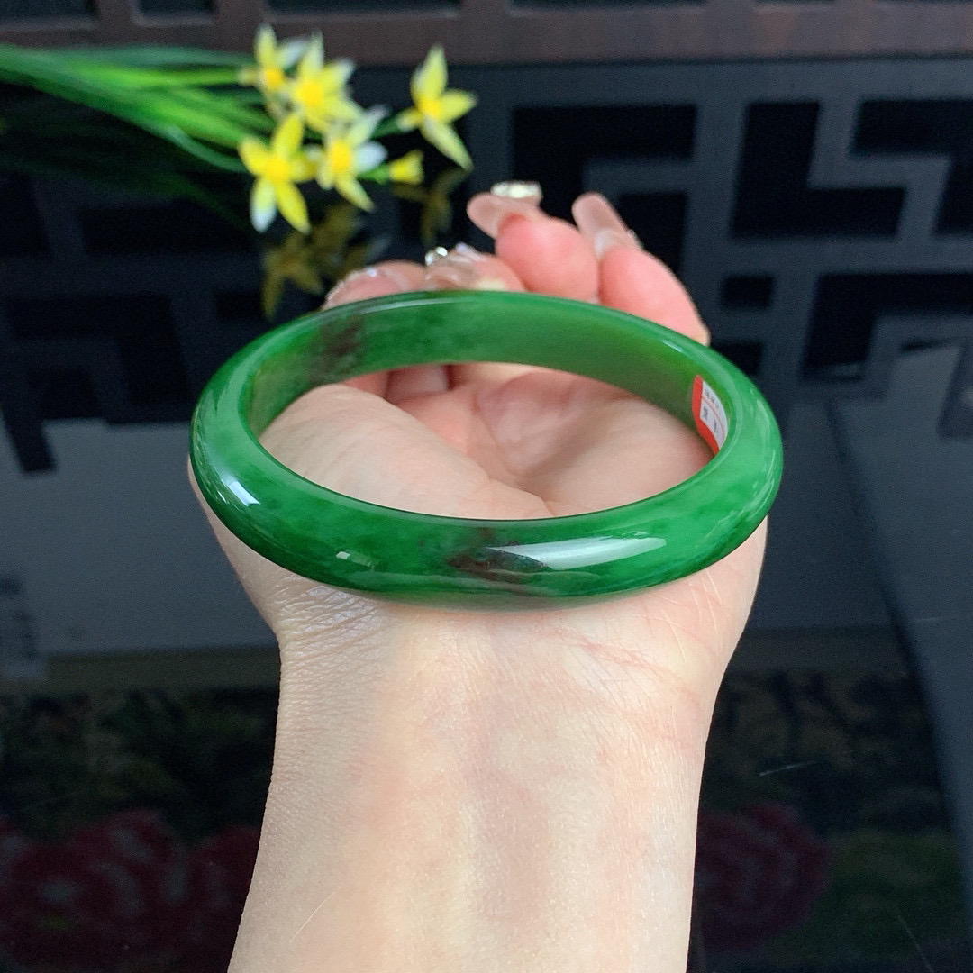 z招财款56*11.2*11.8美人镯 天然缅甸翡翠A货玉手镯飘花圆条大气玉手环