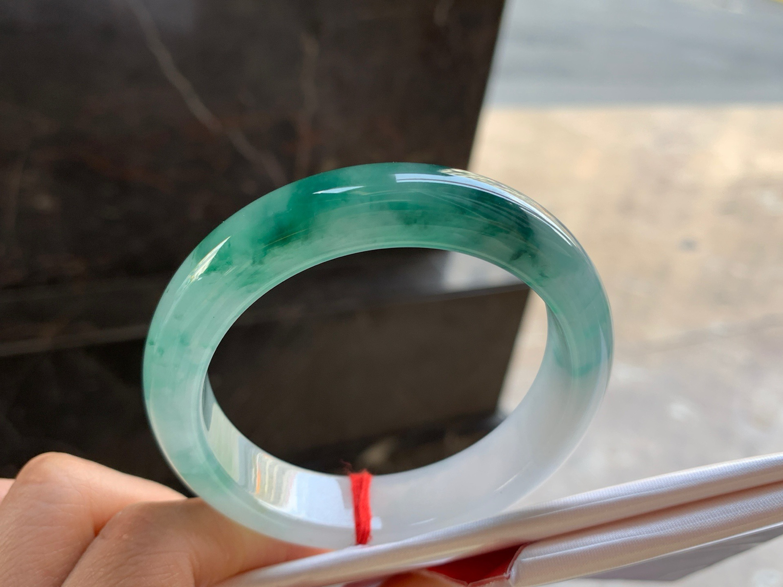 59.7/9.8,绿底圆条,一抹翠色鲜活灵动,种老,佩戴优雅永不过时,皮纹。