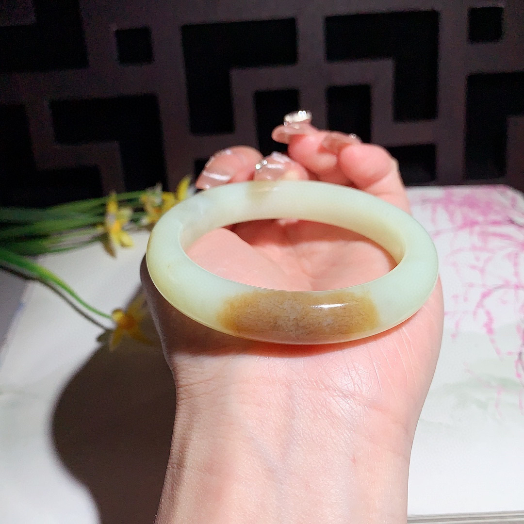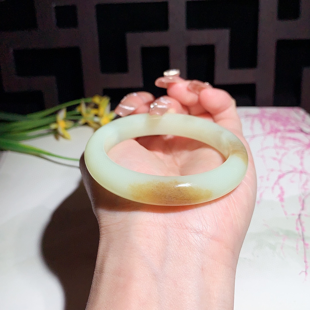 和田玉55圈且末糖手镯!玉质细腻油润 底色纯净 无裂无杂黑 脂粉好,品质高。