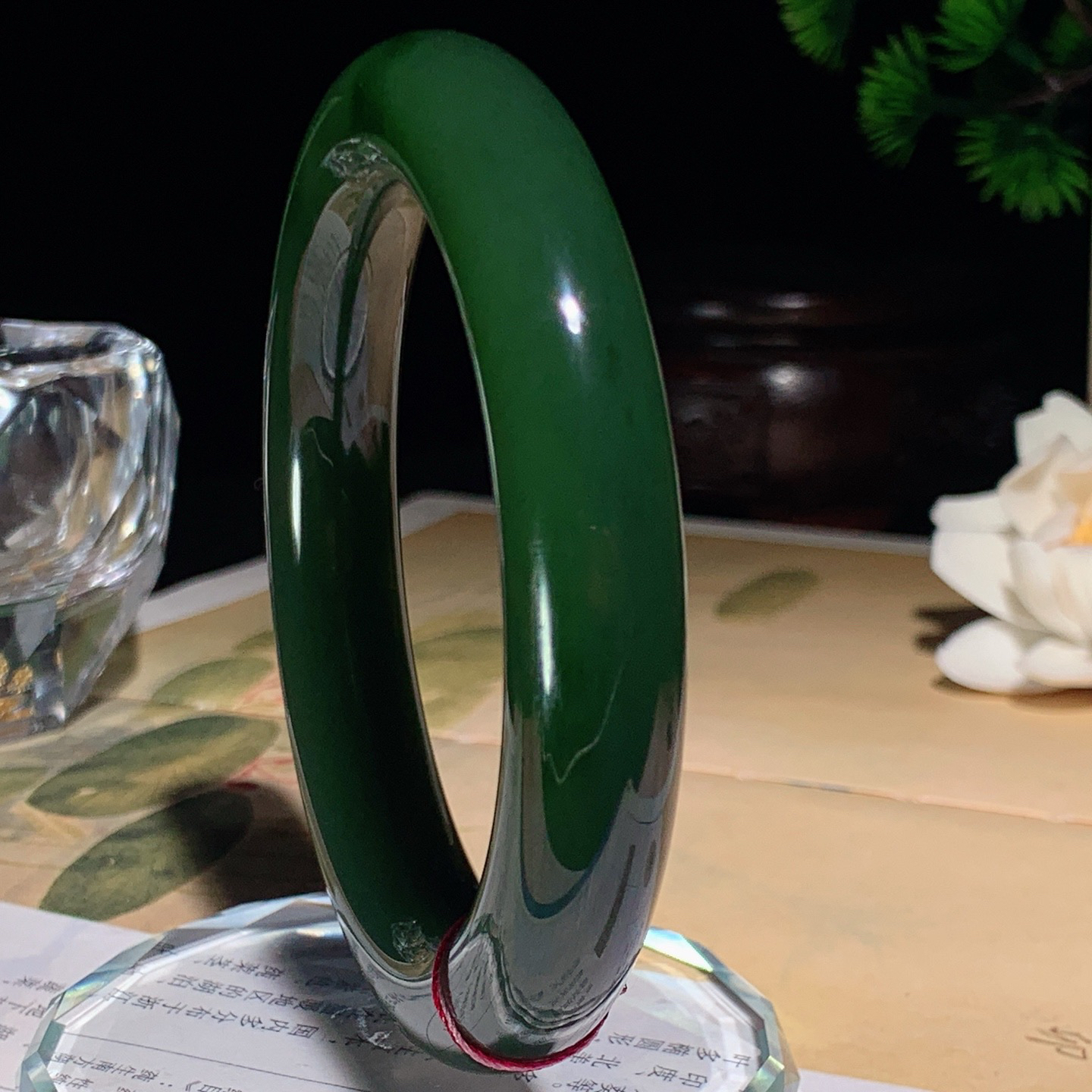 60圈口和田玉七号矿红皮料阳绿俄罗斯碧玉手镯!60圈口尺寸13/12重90.4克 玉质细腻油润 底色