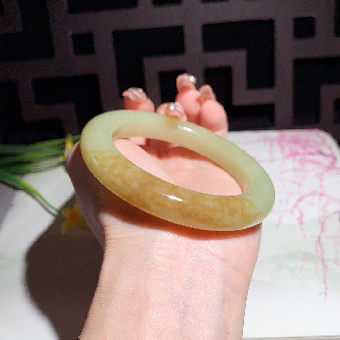 和田玉55圈且末糖手镯!玉质细腻油润 底色纯净 无纹裂 脂粉好,品质高。