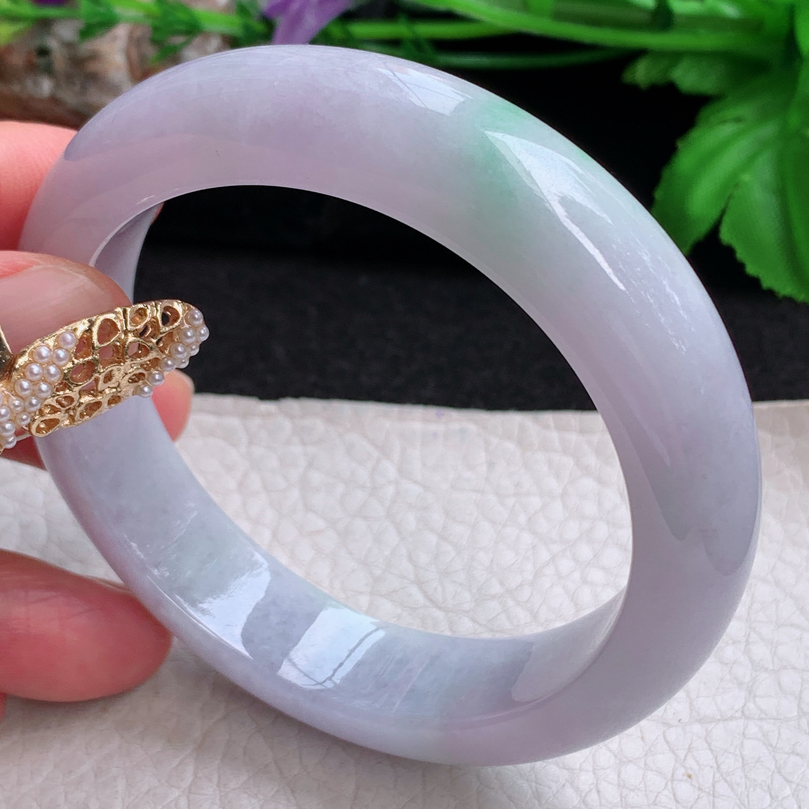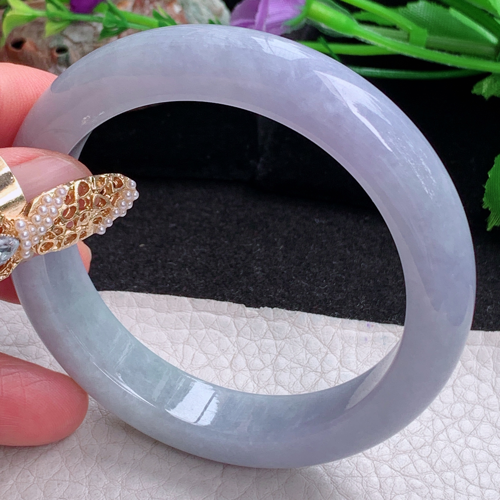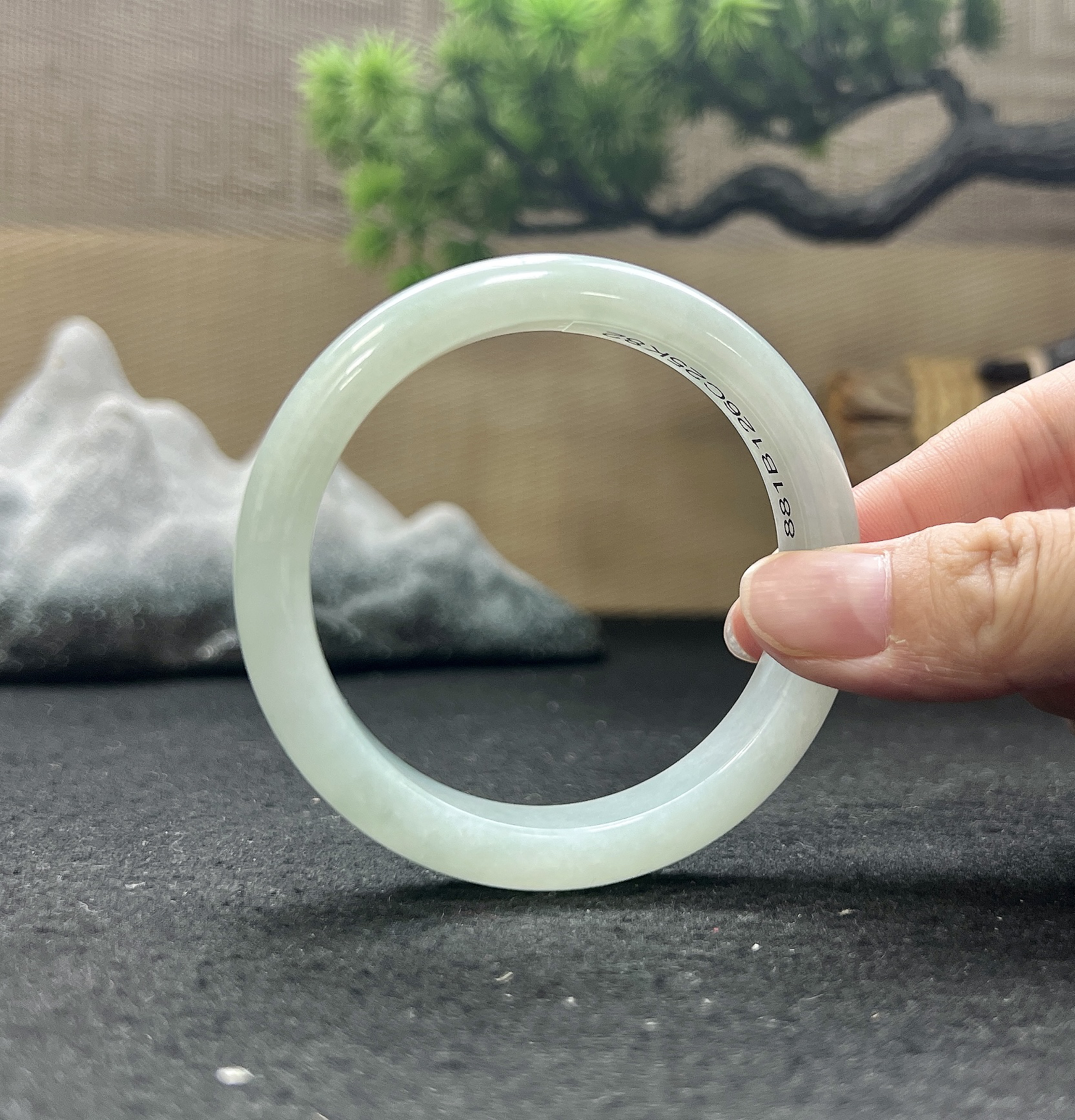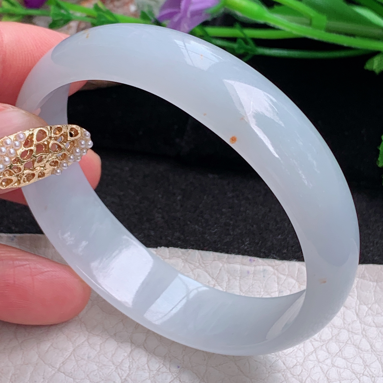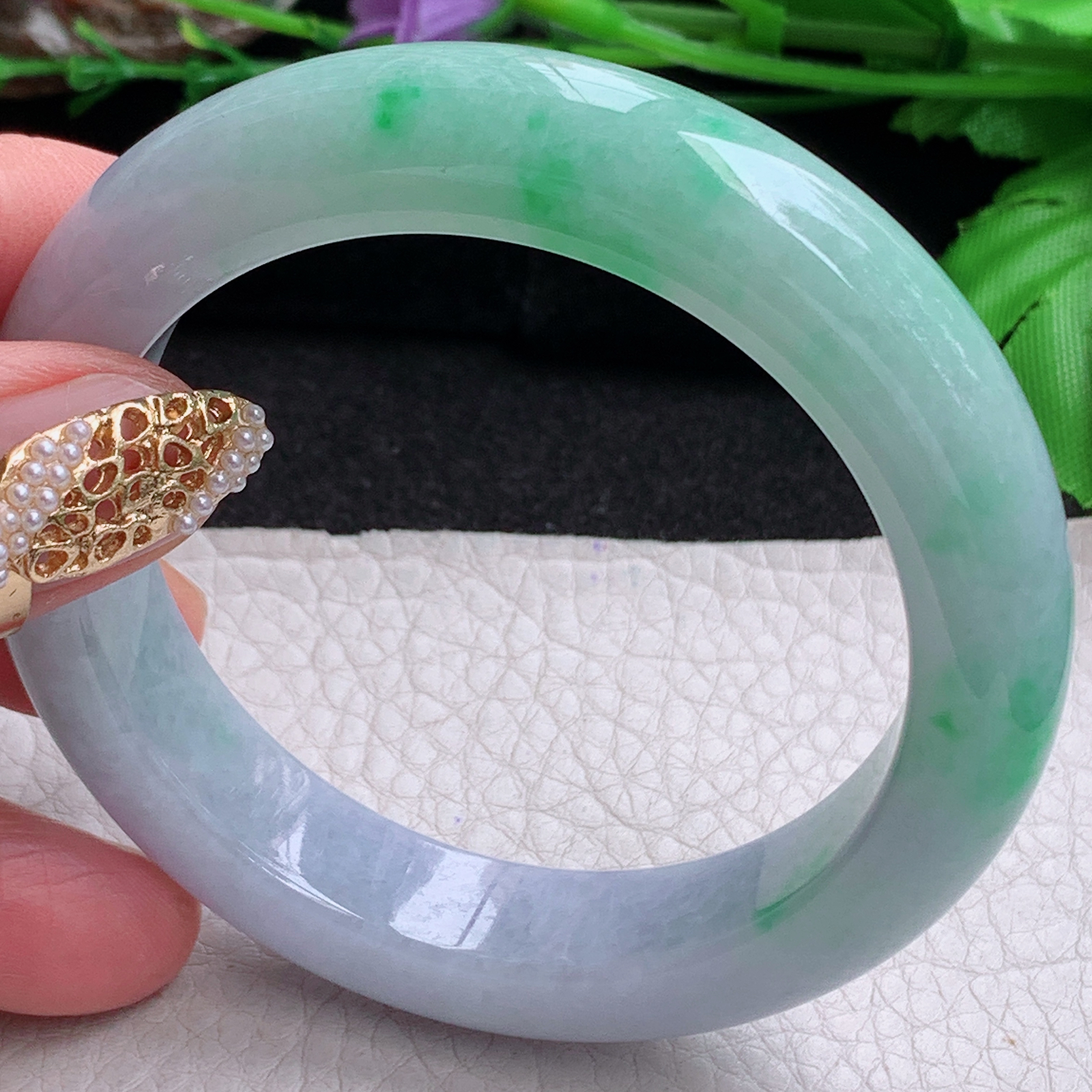 A货天然翡翠冰糯种飘花手镯59圈重量52.54 4月21日