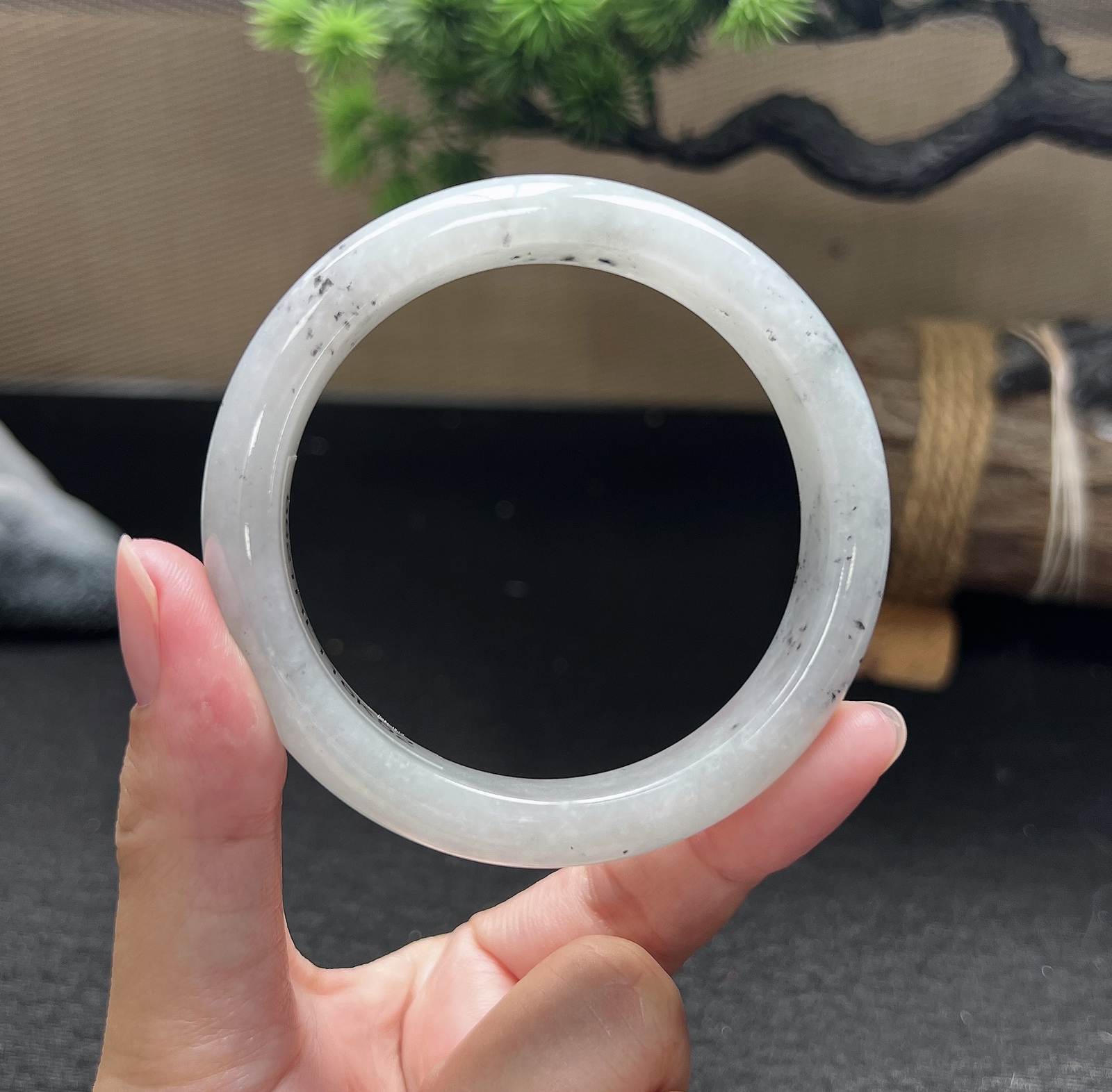 js实拍55.5*19.6*8轮胎镯 天然缅甸翡翠a货手镯白月光厚装正圈玉镯子