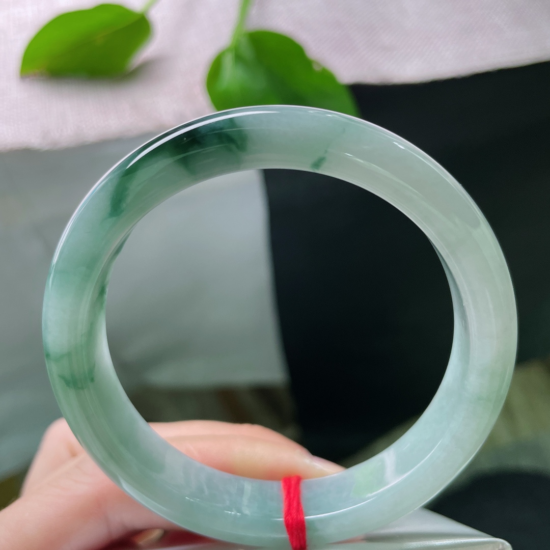 hh实拍55*16.2*7.8招财轮胎镯 天然缅甸翡翠a货手镯女款双彩厚装正圈玉镯子