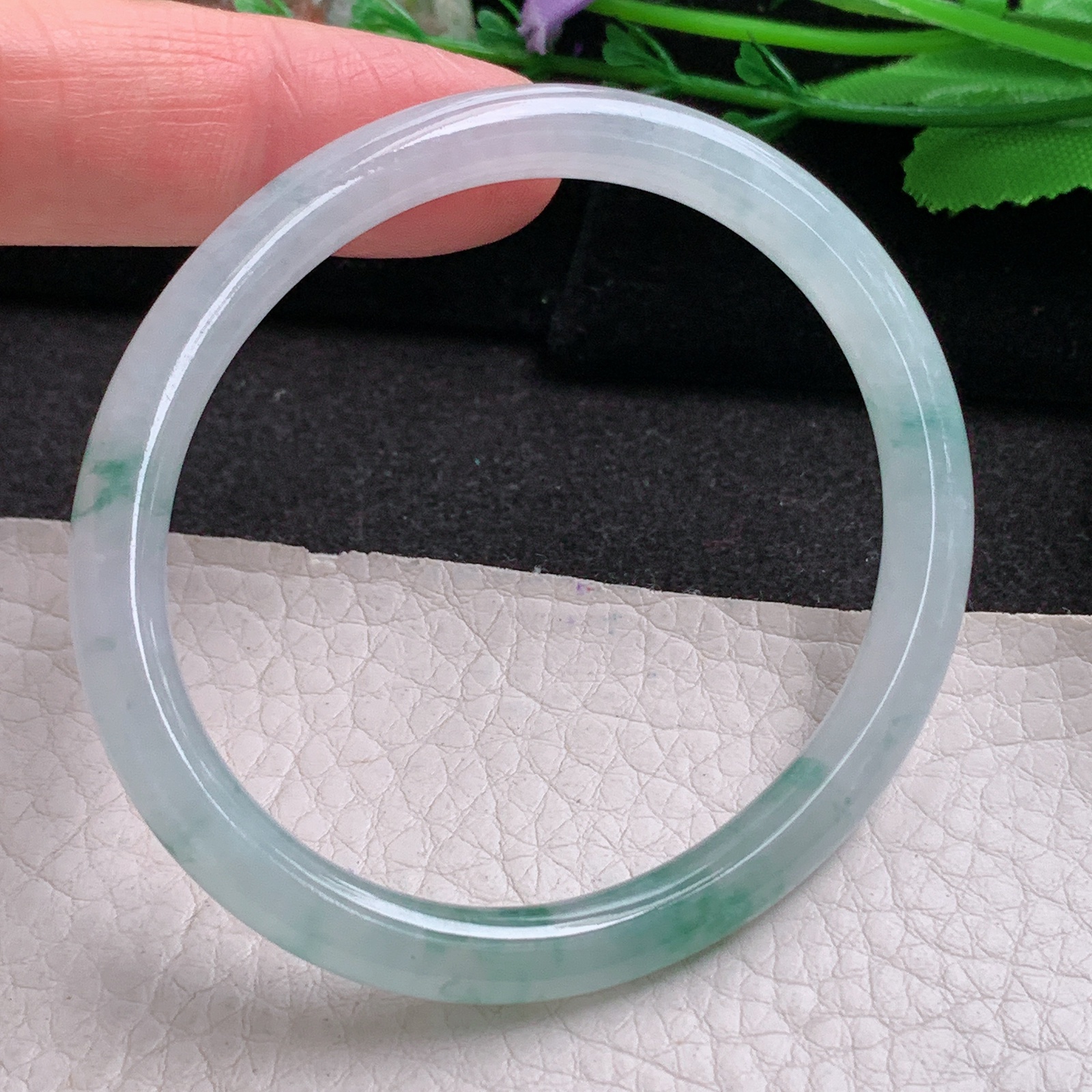 A货天然翡翠冰糯种黄飘花手镯59圈重量50.66 4月23日