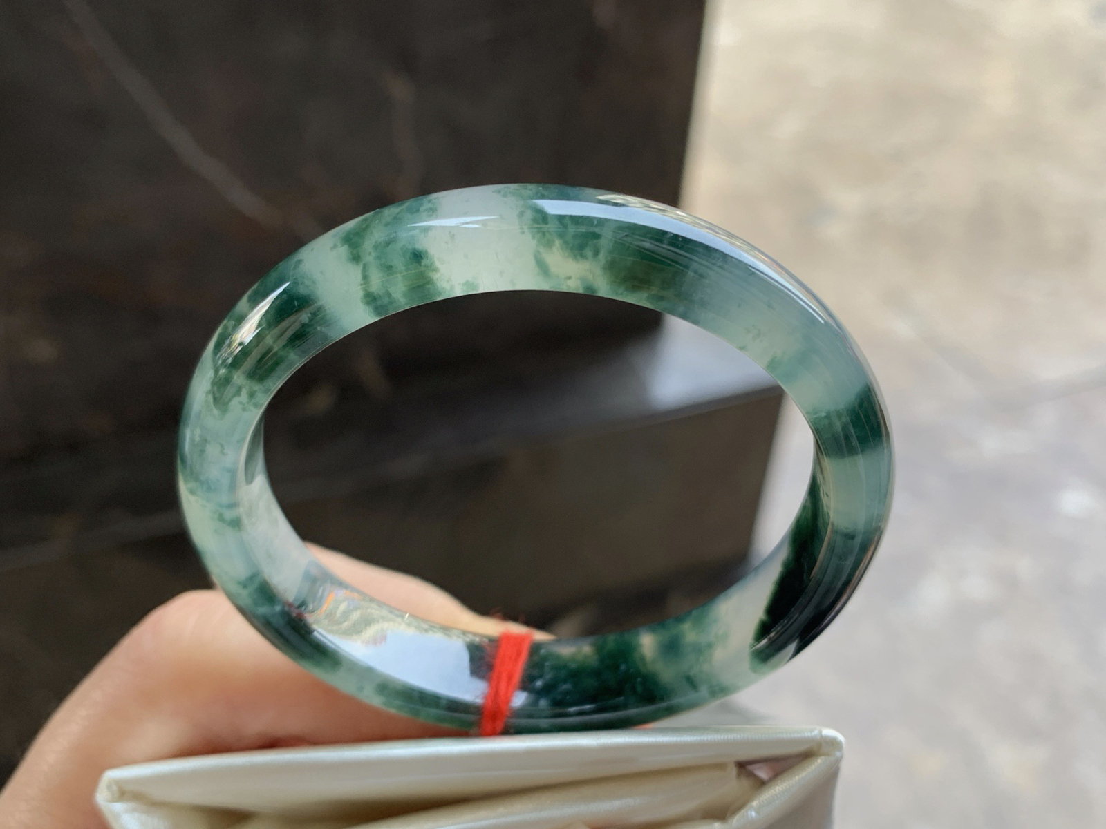 飘阳绿正圈手镯尺寸55.5*12.5*8.5 老种,通体冰透,水头充盈,果冻感十足,翠色鲜阳,灵气