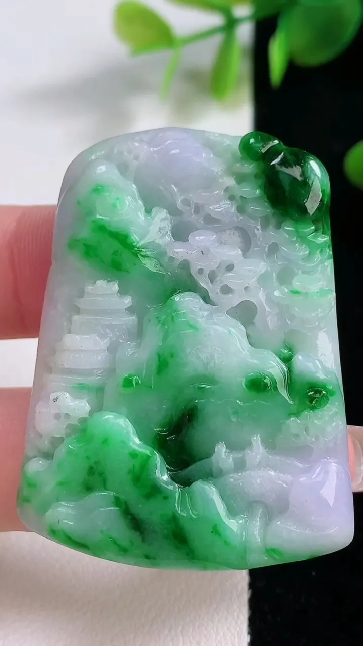 天然A货翡翠山水牌吊坠,尺寸46-36-5.4,重量:19.78g 12月18日