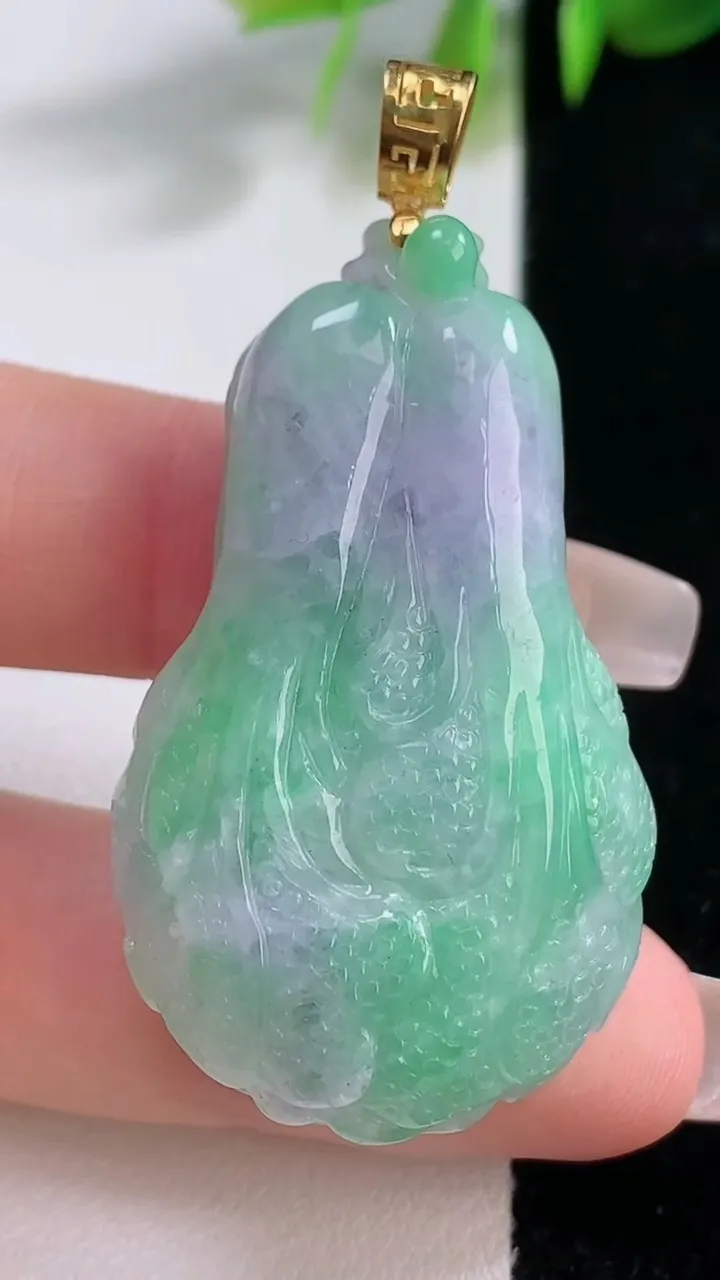 天然A货翡翠白菜吊坠,尺寸44.4-26-12.7,重量:26.67g 12月18日