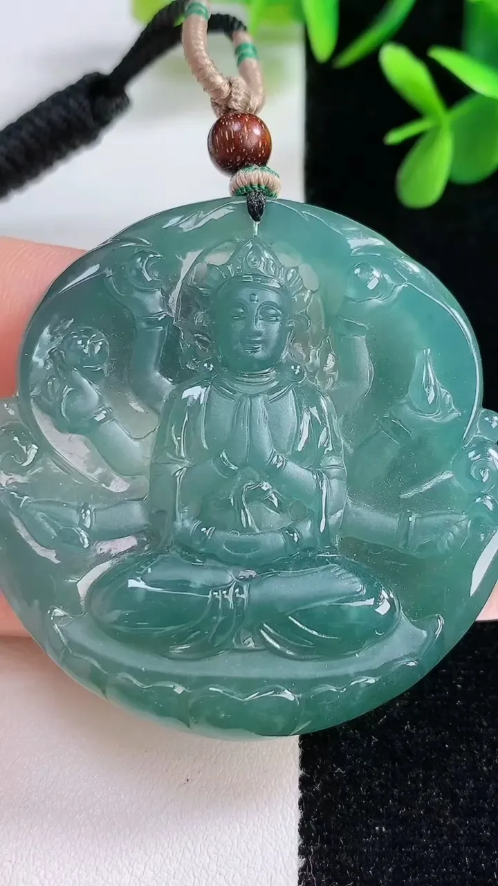 天然A货翡翠千手观音吊坠,尺寸50-6.5,重:33.70g 12月21日