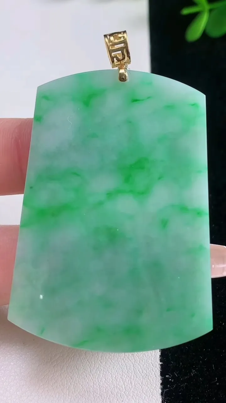 天然A货翡翠无事牌镶…
