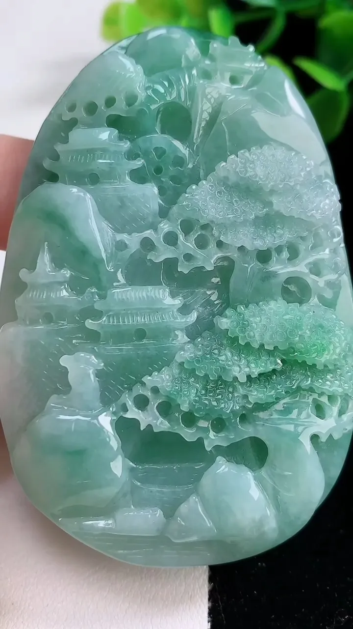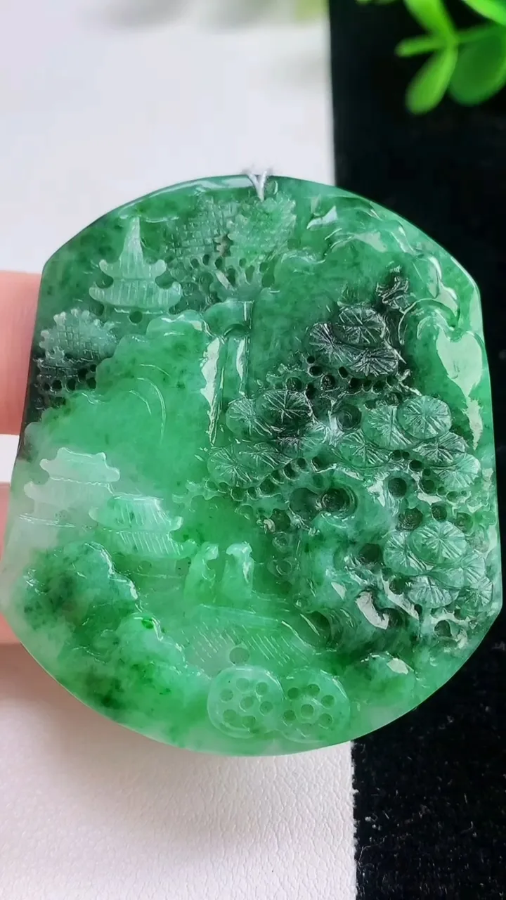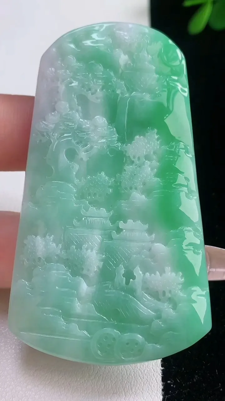天然A货翡翠山水牌吊坠,尺寸73-49-15,重:99.74g 12月21日