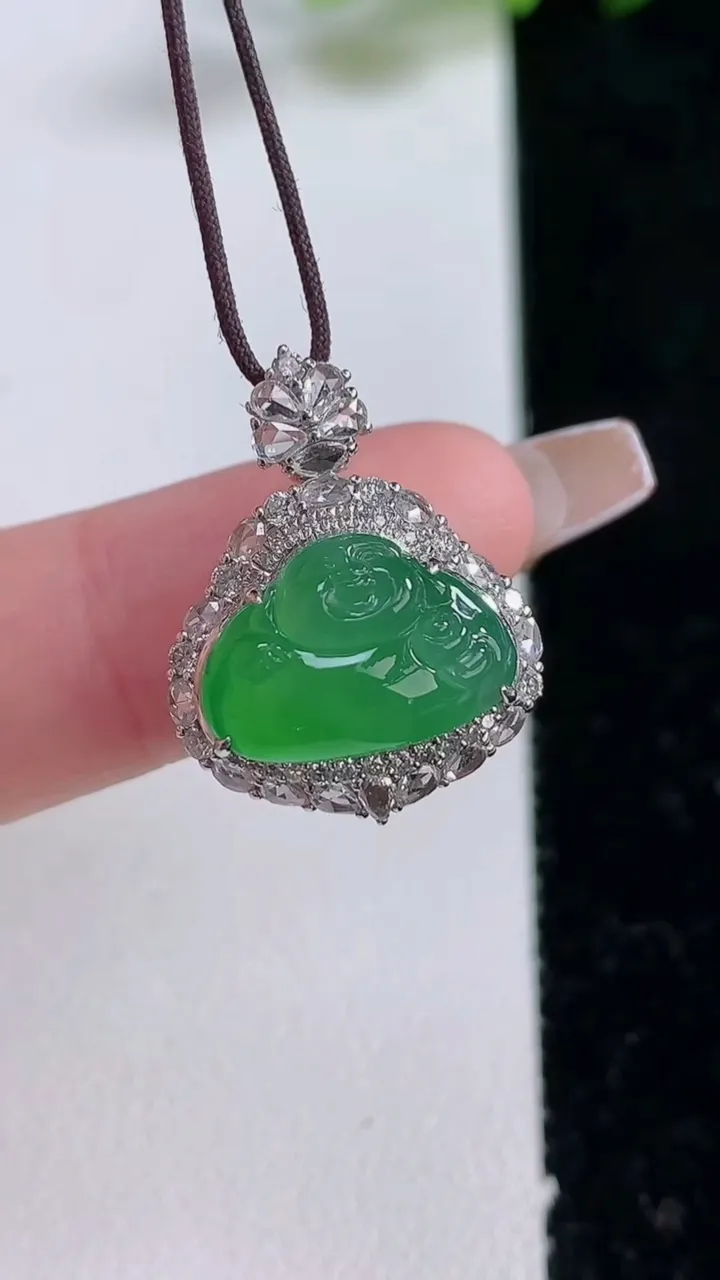 天然A货翡翠如意头吊坠,尺寸15.8-22-4.6,重量:2.92g 12月25日