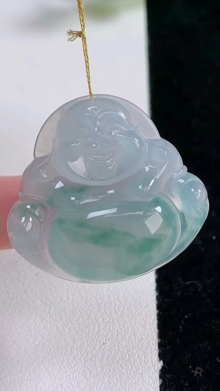 天然A货翡翠48.3/36.7/5.4老坑冰润水灵冰晴仿古无事牌吊坠翡翠挂件