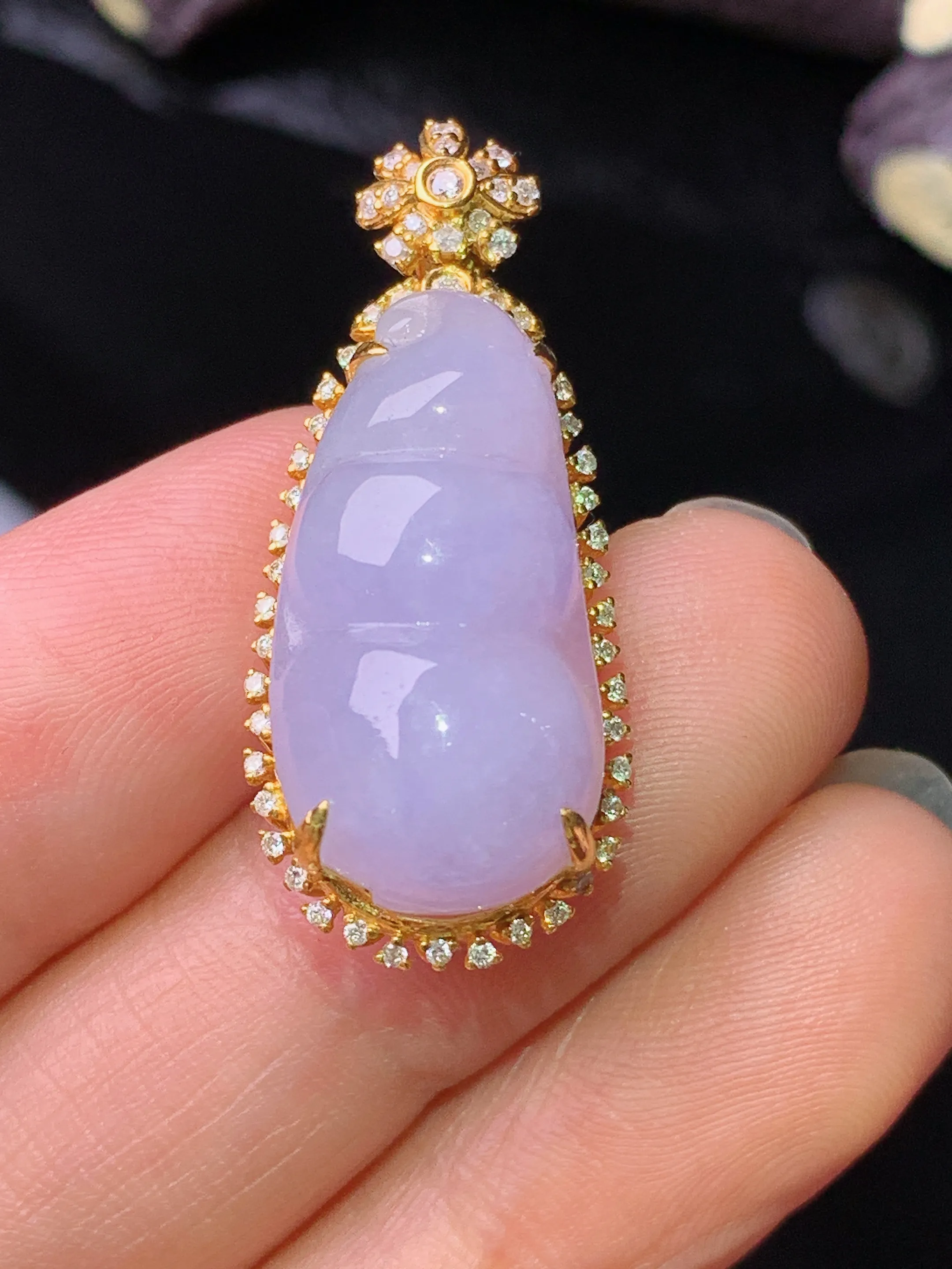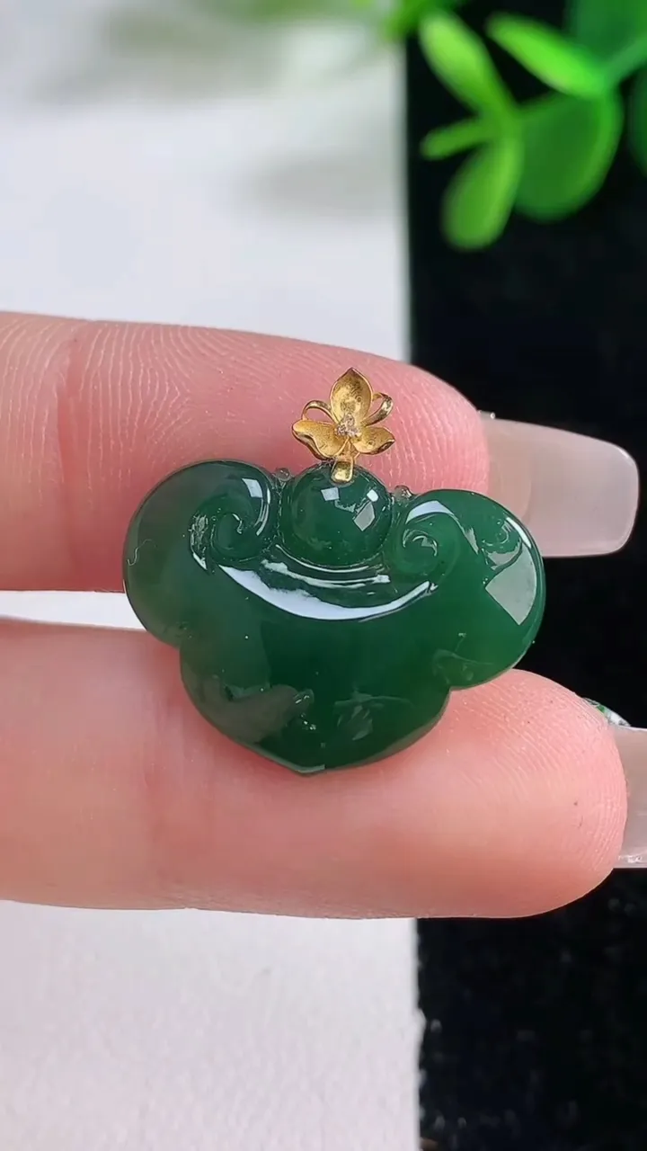 天然A货翡翠18K金飘花葫芦吊坠,尺寸31-16.5-5.9,重量:4.46g 12月25日