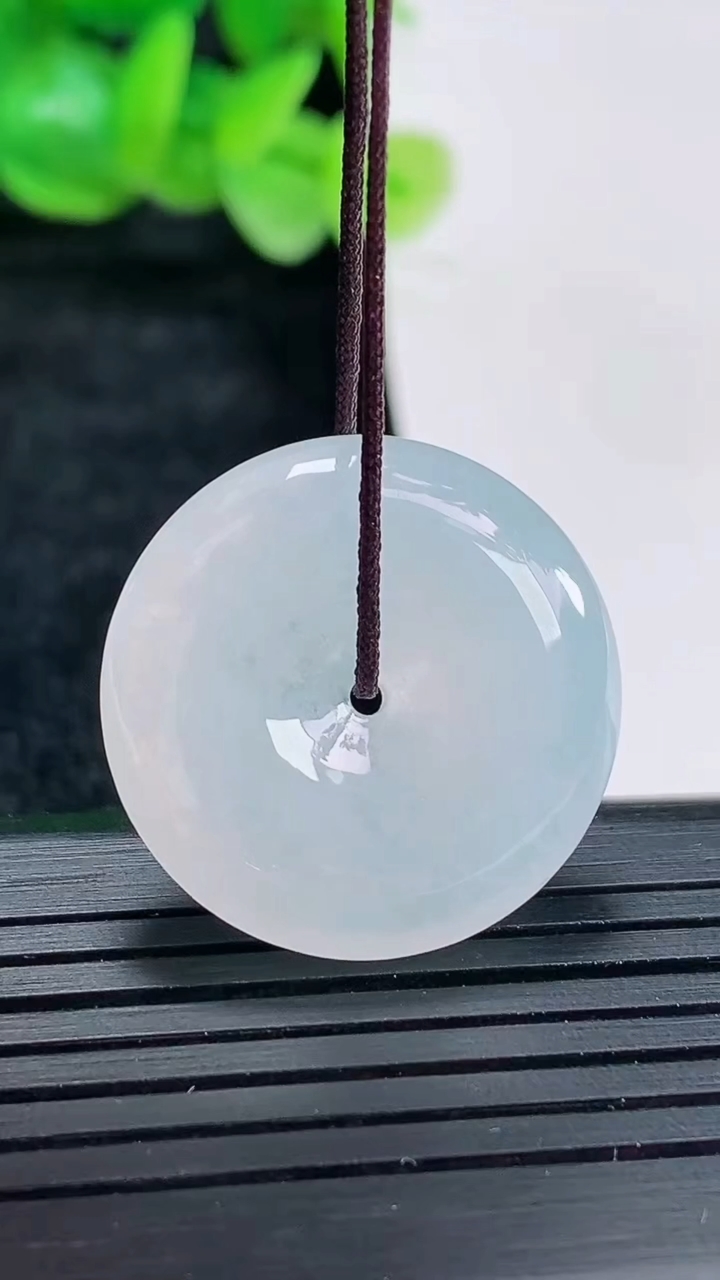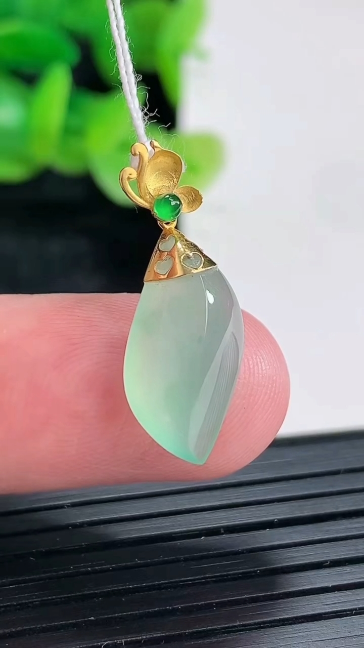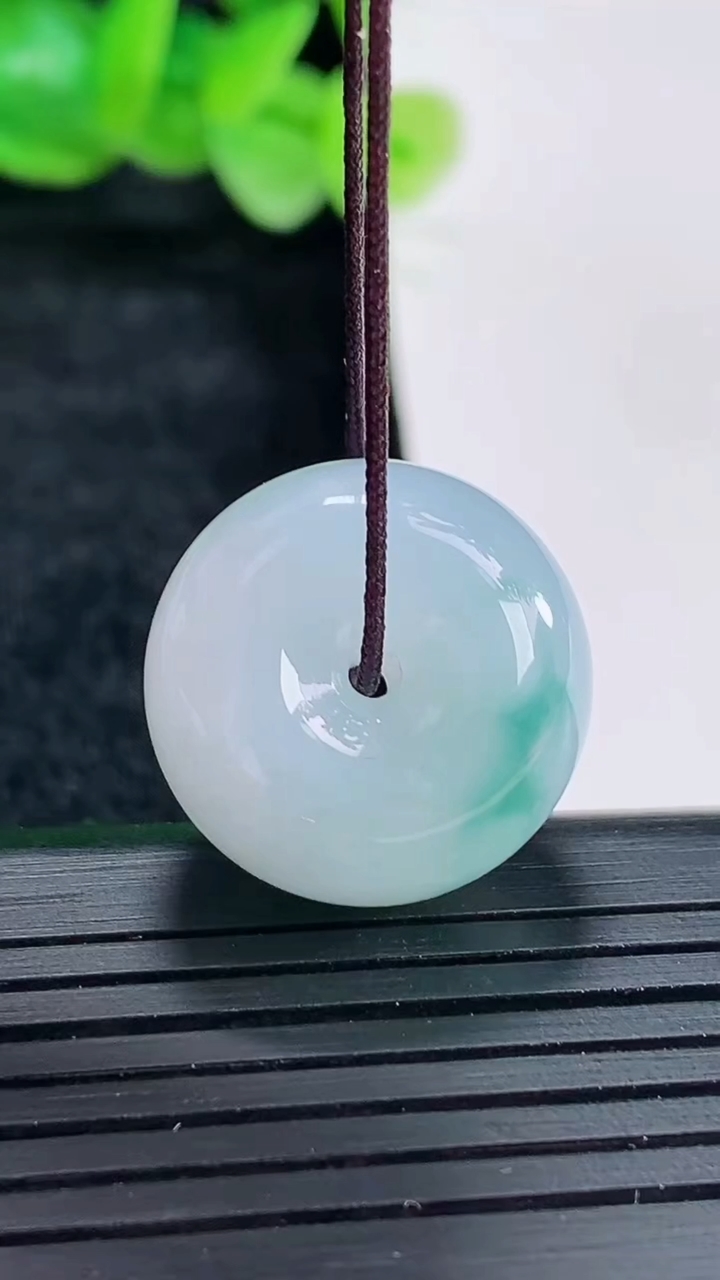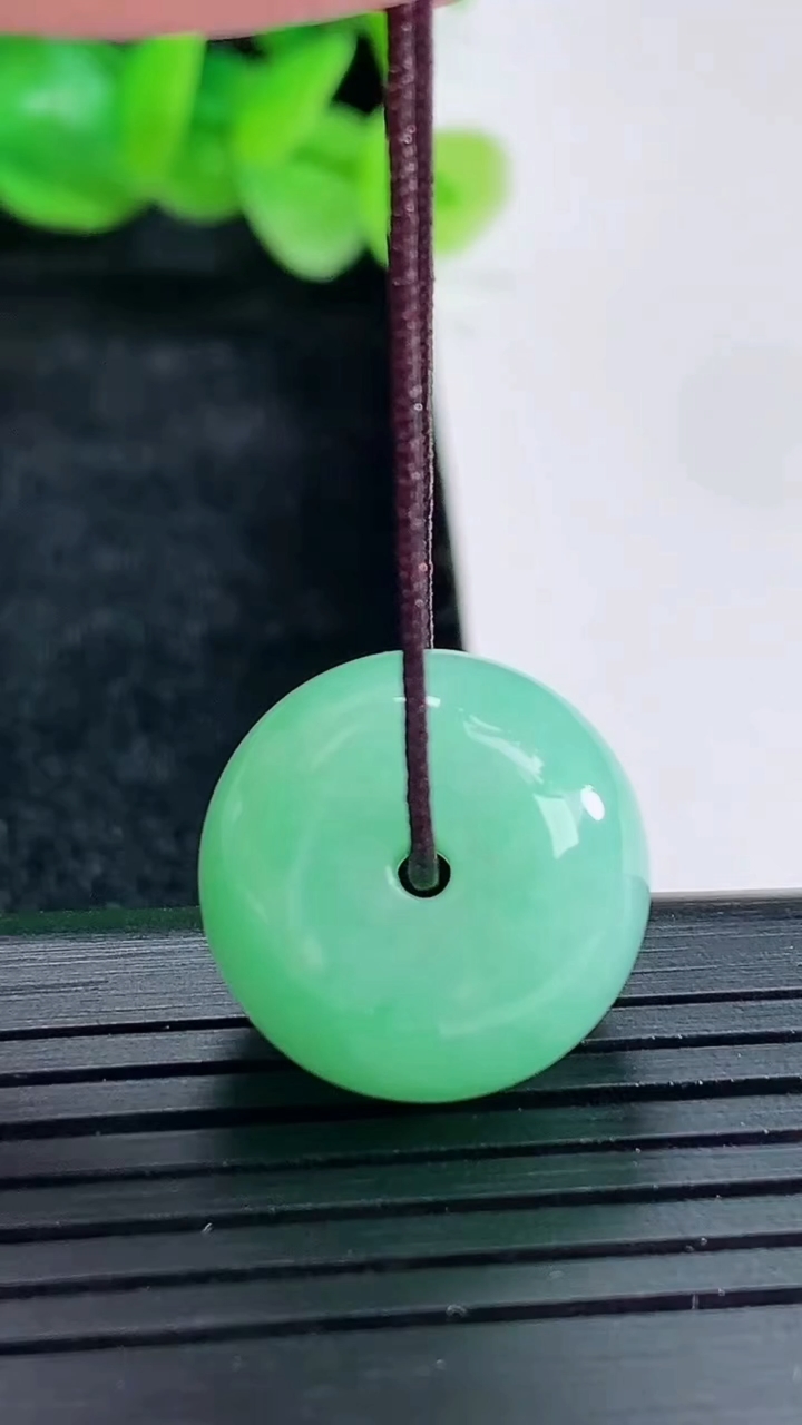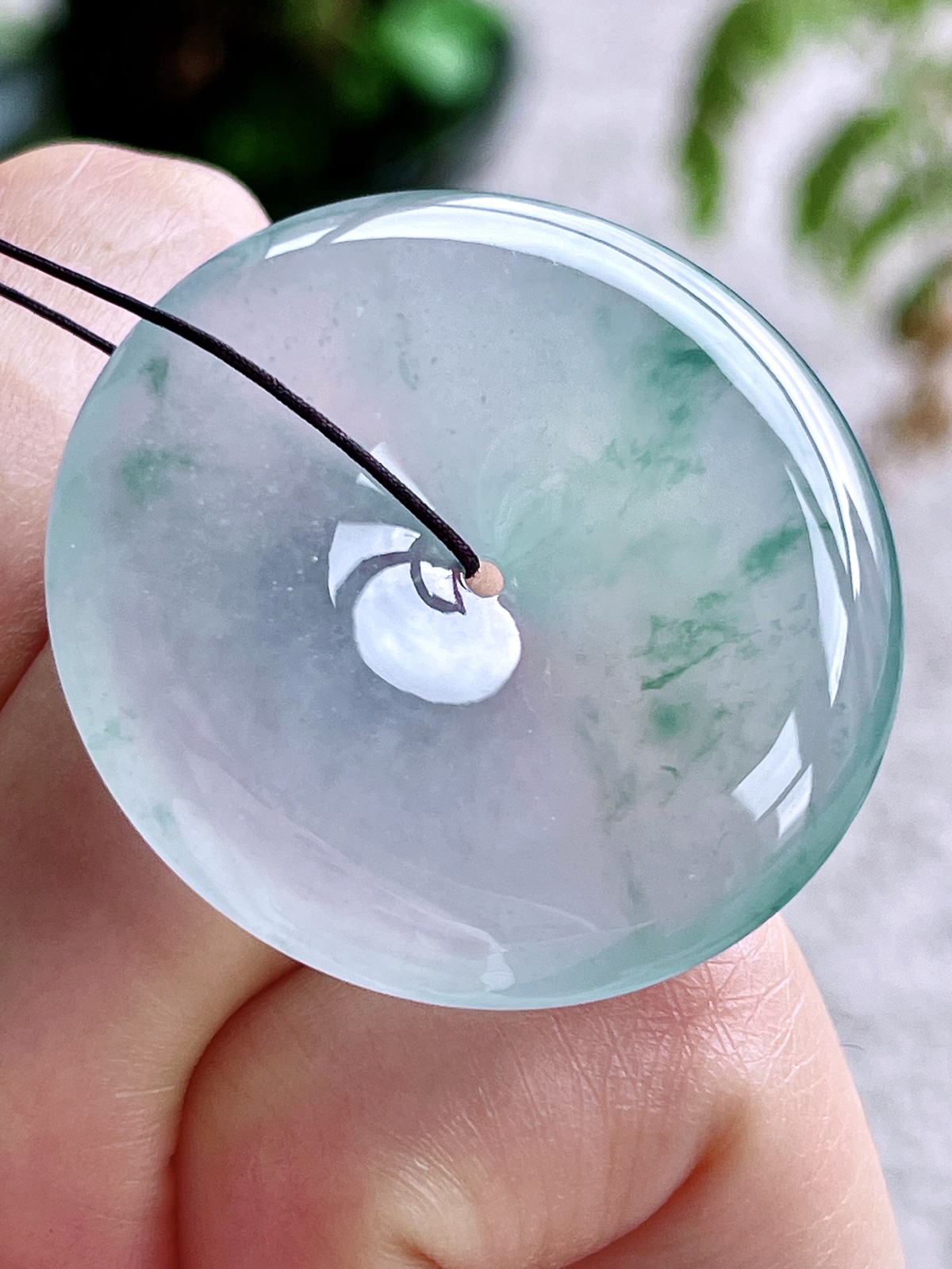 缅甸天然翡翠A货,18k金镶嵌冰飘绿平安扣吊坠,尺寸:整体31/23.6/4.3mm,祼石23.6/4.3mm,重量:5.74g
