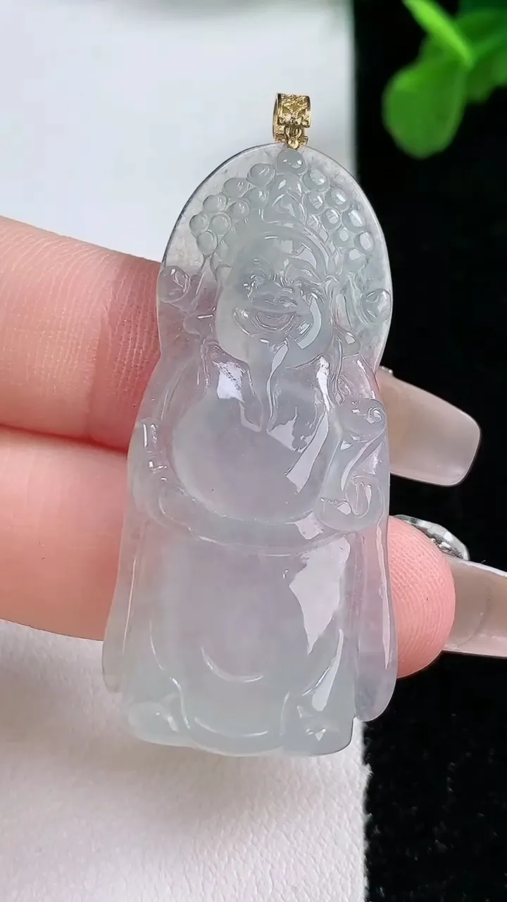 天然A货翡翠种白冰财神爷吊坠,尺寸45-21.6-5,重:8.61g 116 1月1日