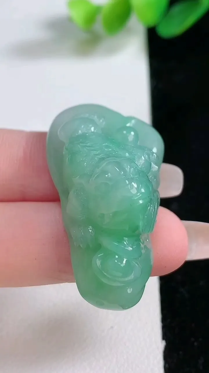 天然A货翡翠悟道吊坠,尺寸45.5-39.5-6,重:31.99g 573 1月1日