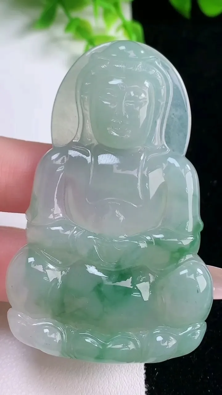 天然A货翡翠种飘花观音菩萨吊坠,尺寸66.3-42.3-5.5,重量:28.23g 1月17日