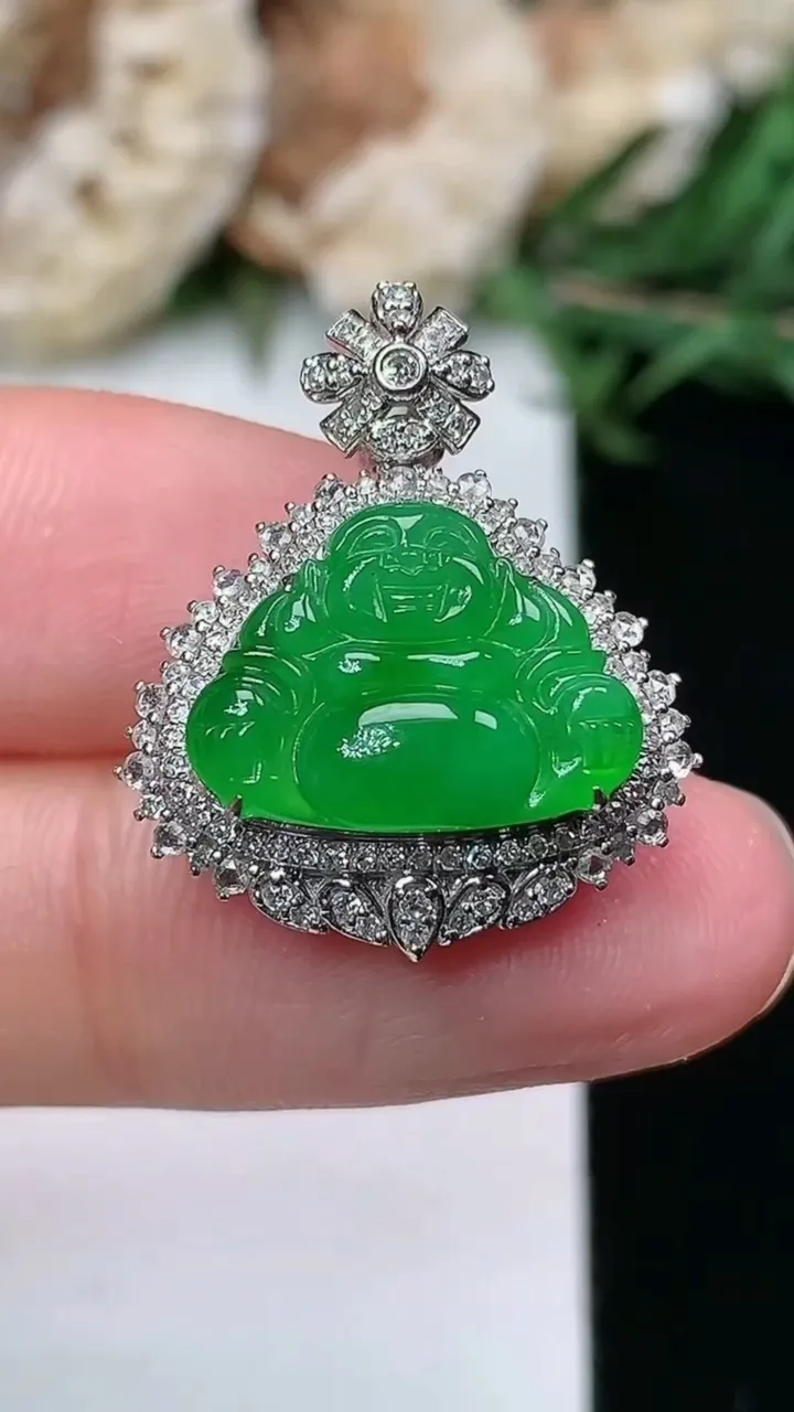 天然A货翡翠佛公吊坠,尺寸23-19.5-10.3,裸石10.8-14.7,重量:3.71g 1月2