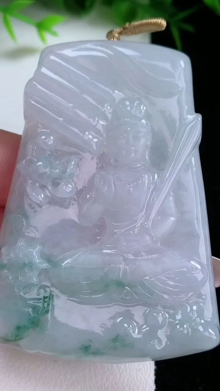 天然A货翡翠飘花文殊菩萨吊坠,尺寸66-46-6,重量:39.49g 1月26日