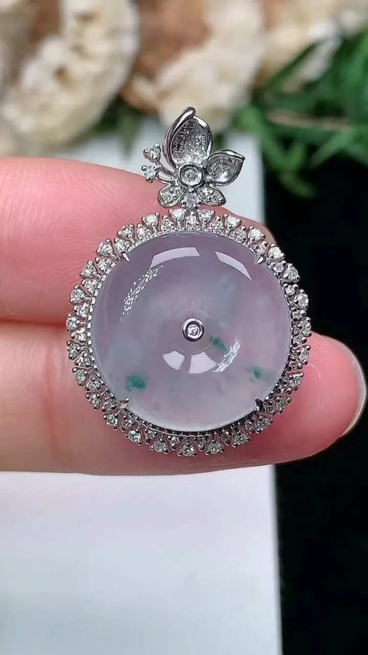 天然A货翡翠飘花平安扣吊坠,尺寸26.2-18.6-8.6,裸石14.8,重量:3.24g 2月2日