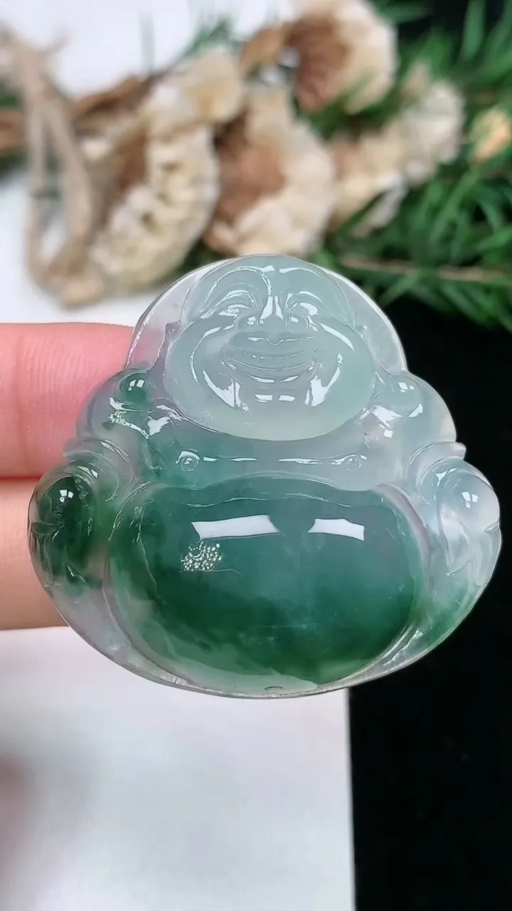 天然A货翡翠飘花佛公吊坠,尺寸36.7-38.4-9,重量:17.69g 2月2日
