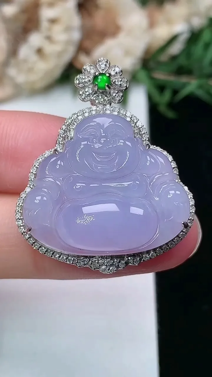 天然A货翡翠紫罗兰佛公吊坠,尺寸32.6-26.2-9.2,裸石20.5-23.7,重量:5.80g